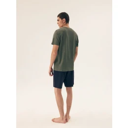 Pánské pyžamo 42634 Dare HENDERSON - z vysoce jakostní bavlny - zelené tričko s krátkými rukávy - zdobené nápisem na přední straně - jednobarevné šortky - elastická guma se šňůrkou