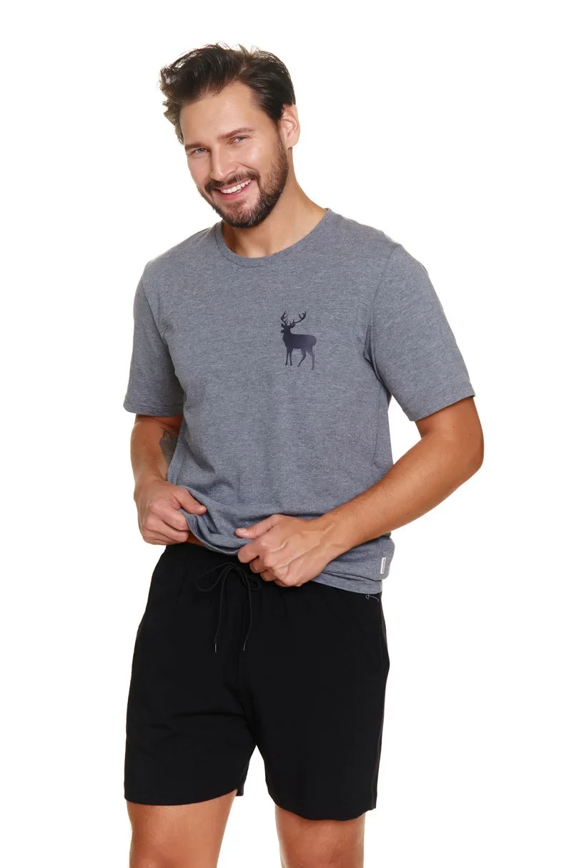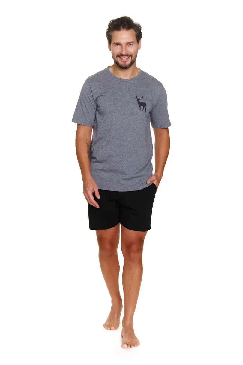 Pánské pyžamo 3474 Lorenzo je klasickou a pohodlnou volbou vyrobenou výhradně z přírodní, prodyšné bavlny. Hladká, pevná košile s dlouhými rukávy a kulatým výstřihem poskytuje jednoduchý, elegantní vzhled a pohodlné nošení. Soupravu doplňují dlouhé, vzorované kalhoty s praktickými postranními kapsami, které dodávají funkčnost a pohodlí. V pase je netlačící gumička, která zaručuje pohodlné nošení během spánku a odpočinku. Jedná se o ideální volbu pro muže, kteří oceňují přírodní materiály, volnost pohybuóa nadčasový styl.