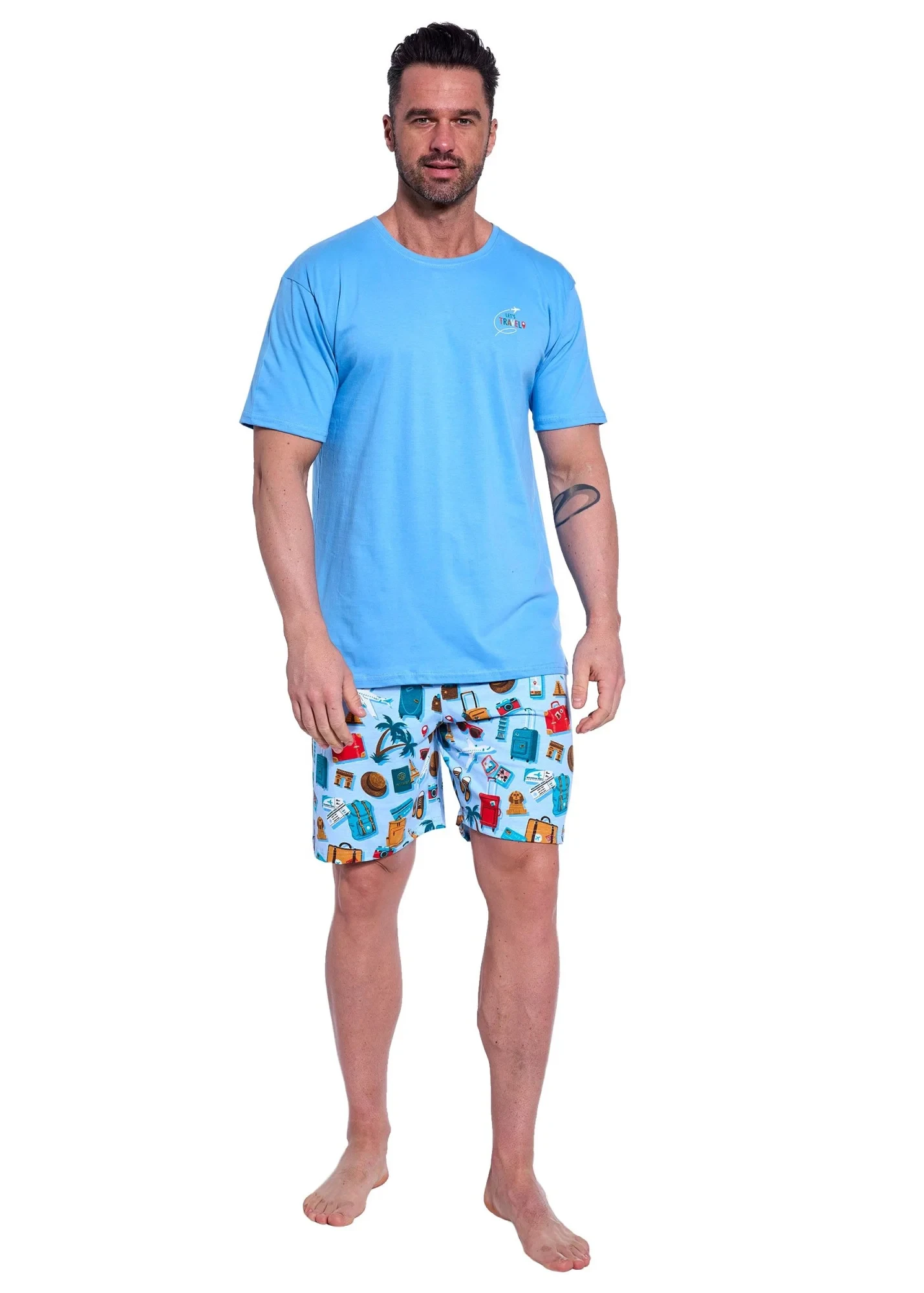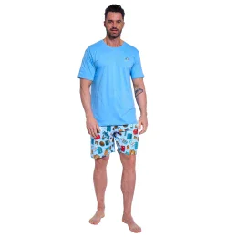 Pánské pyžamo 326/174 Travel CORNETTE - z vysoce jakostní bavlny - světle modré tričko s krátkými rukávy - půlkulatý výstřih - ozdobené potiskem na přední straně - vzorované kraťasyMateriálové složení: 100% bavlna
