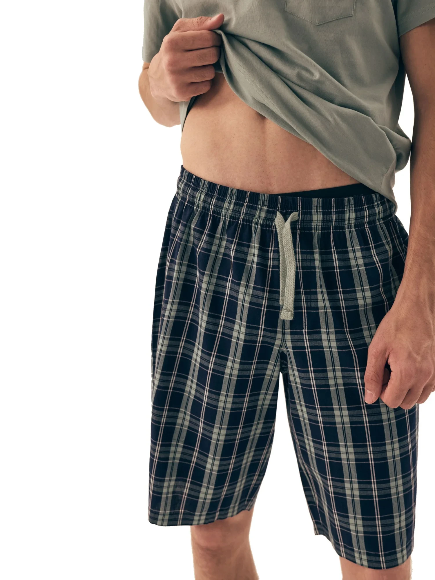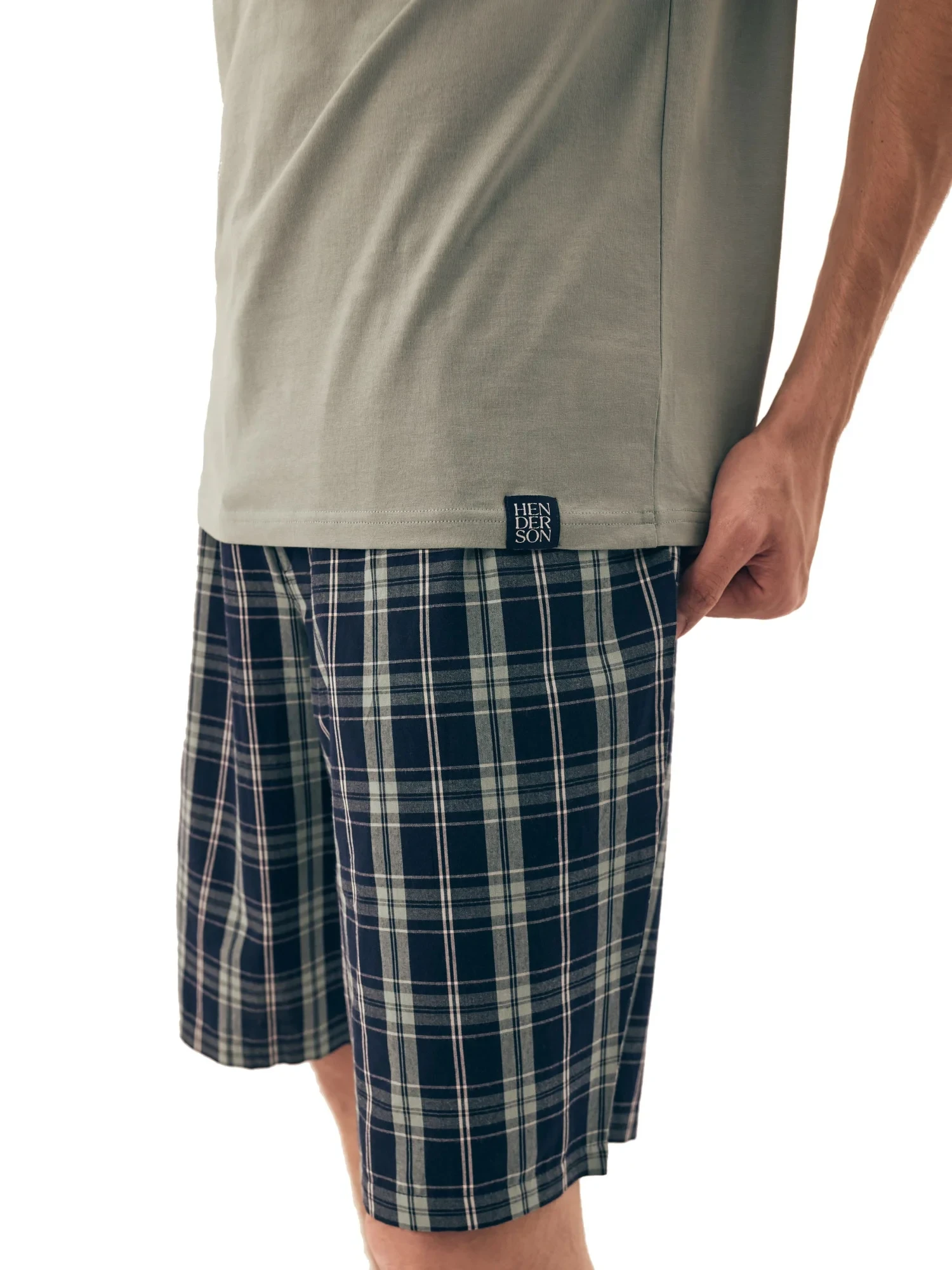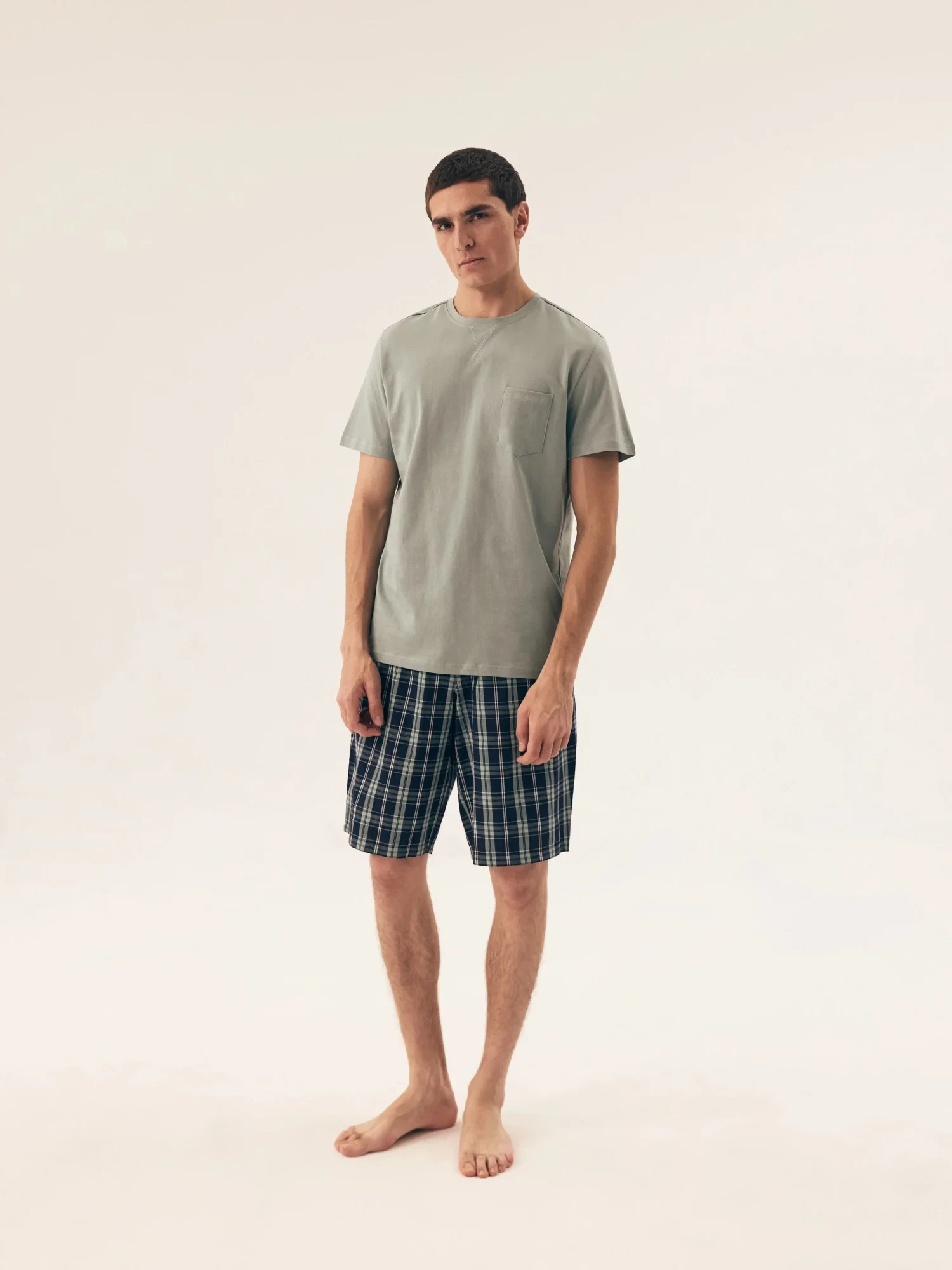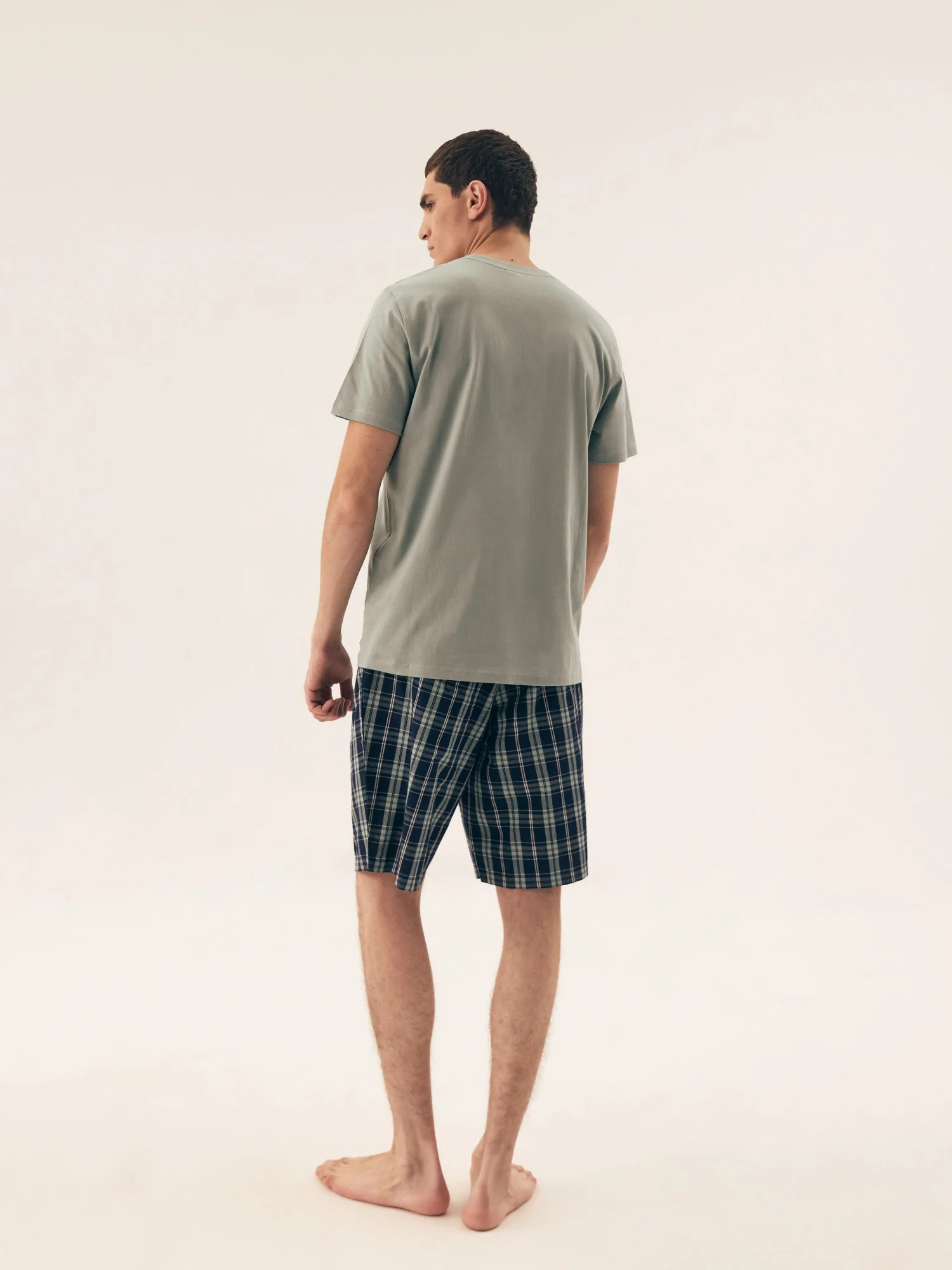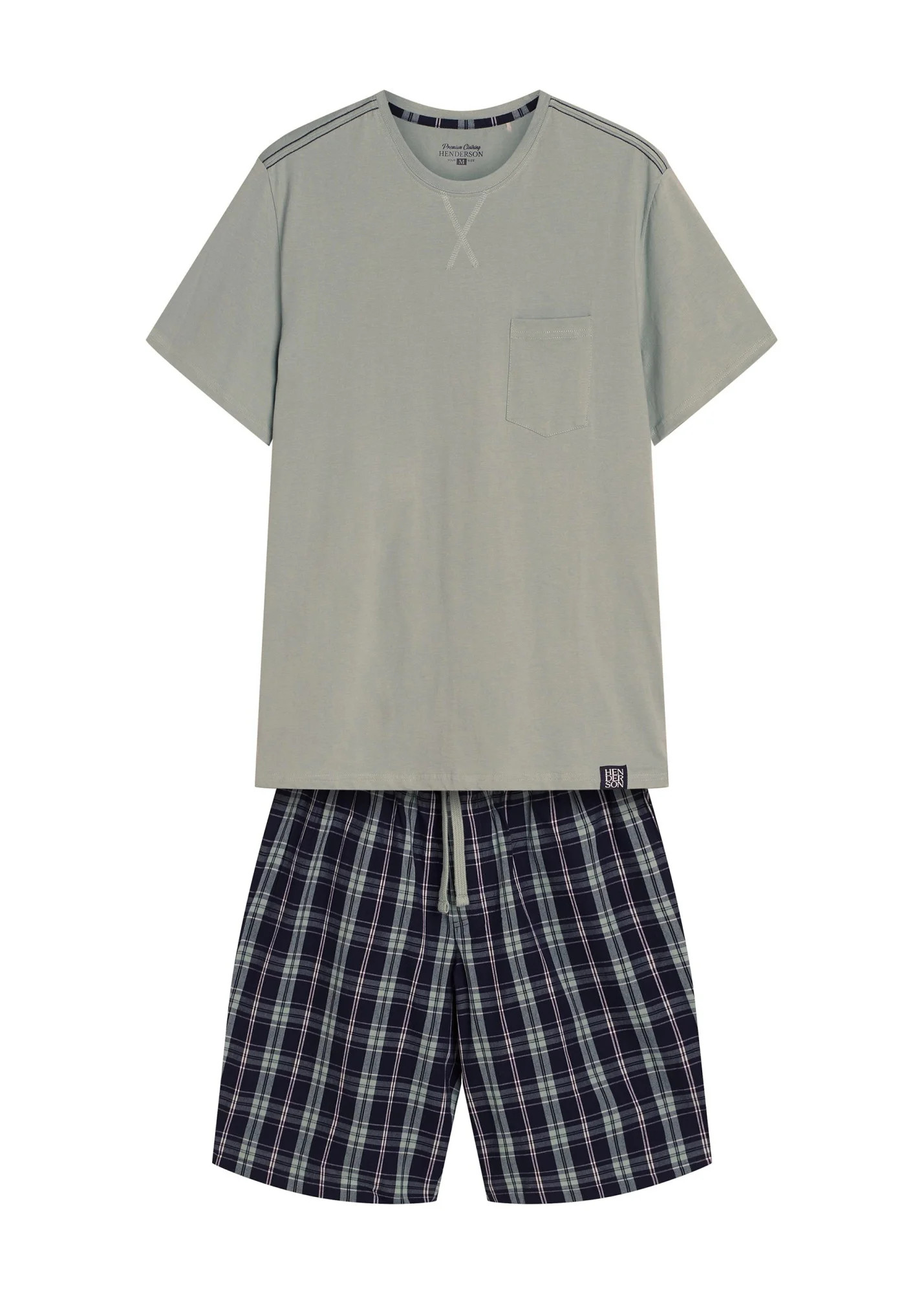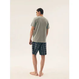 Pánské pyžamo 42617 Dexter HENDERSON - z vysoce jakostní bavlny - zelené tričko s krátkými rukávy - zdobené kapsičkou na přední straně - kárované šortky - elastický pas se šňůrkou
