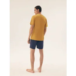 Pánské pyžamo 42600 Sun yellow HENDERSON - z vysoce jakostní bavlny - žluté tričko s krátkými rukávy - zdobené potiskem na přední straně - jednobarevné šortky - elastický pas