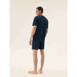 Pánské pyžamo 42601 Shore dark blue HENDERSON - z vysoce jakostní bavlny - tmavě modré tričko s krátkými rukávy - vzorované šortky - elastický pas se zavazováním na šňůrku
