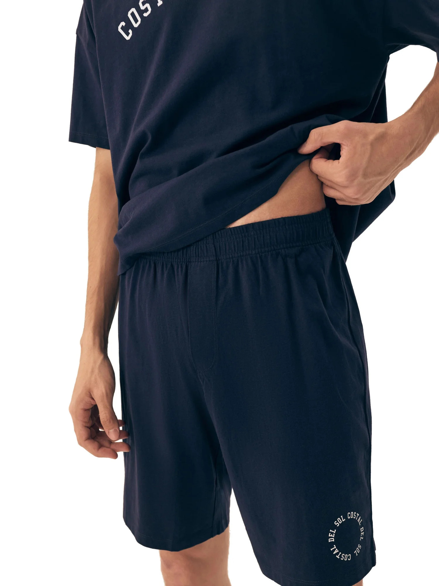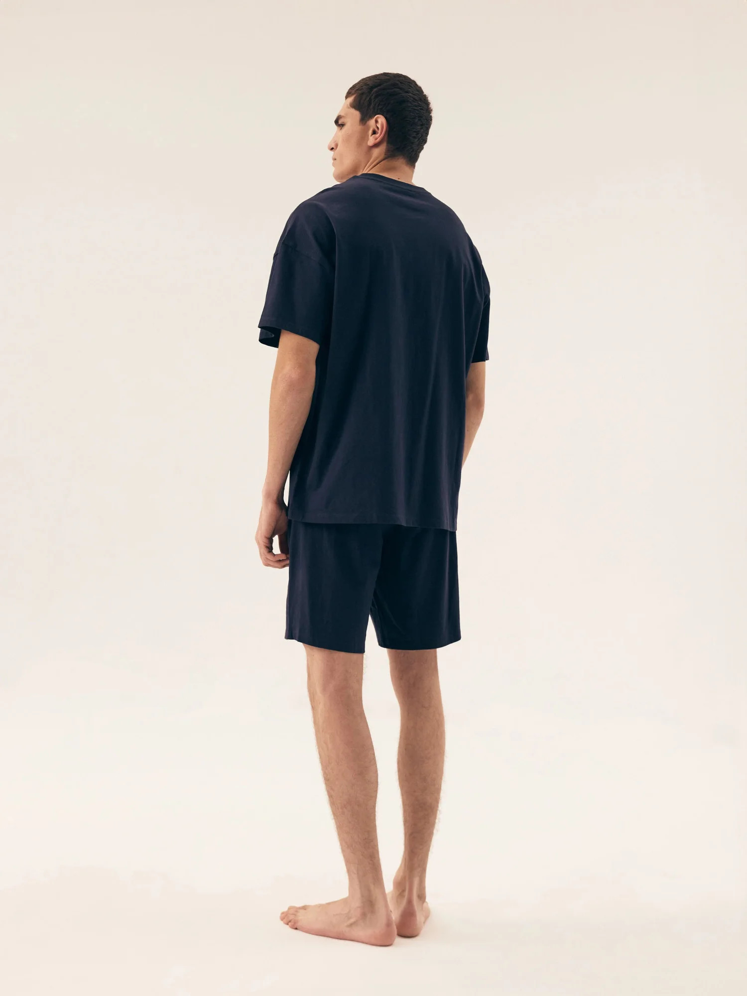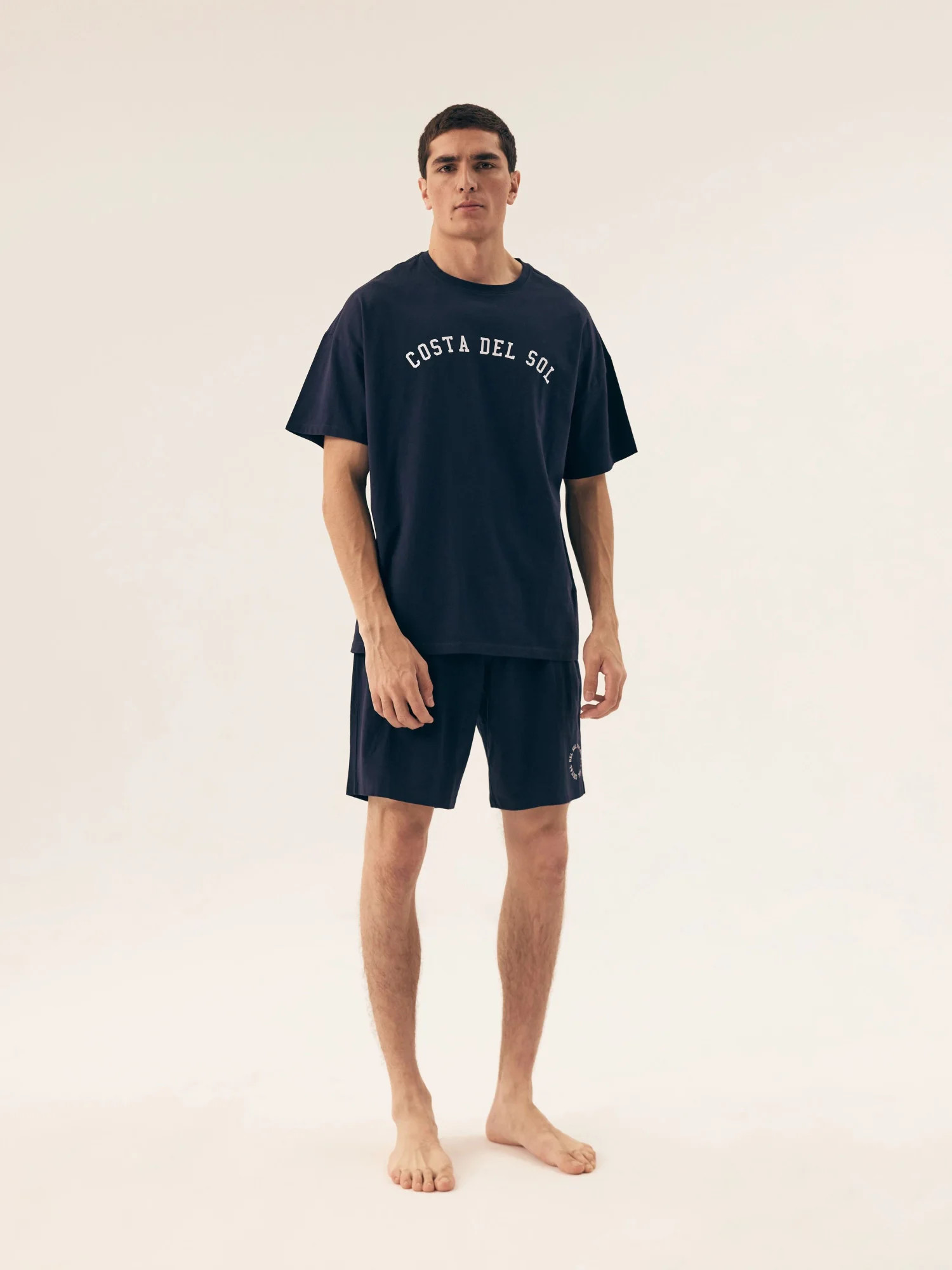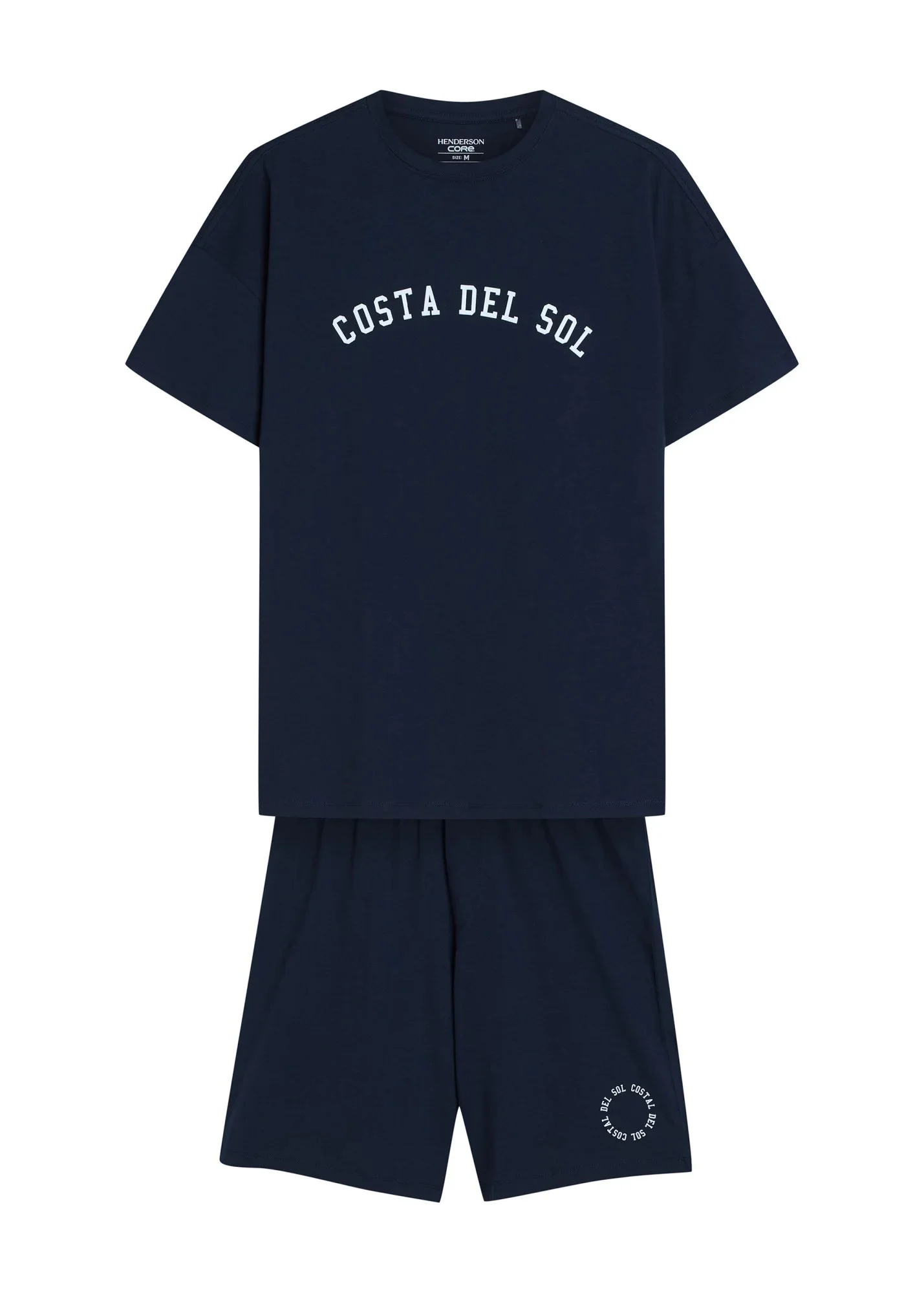 Pánské pyžamo 42605 Sol HENDERSON - z vysoce jakostní bavlny - tmavě modré tričko s krátkými rukávy - zdobené potiskem na přední straně - jednobarevné šortky zdobené potiskem - elastický pas