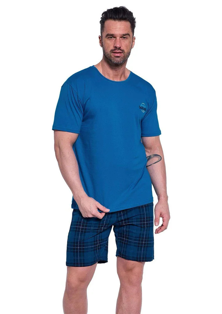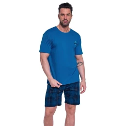 Pánské pyžamo Cornette je vyrobeno z vysoce kvalitní bavlny a nabízí pohodlí i styl pro každodenní nošení. Pyžamo tvoří světle modré tričko s krátkými rukávy, půlkulatým výstřihem a stylovým potiskem na přední straně. Součástí jsou také pohodlné kraťasy s moderním károvaným vzorem. Ideální volba pro muže, kteří ocení kvalitní materiál a promyšlený design.