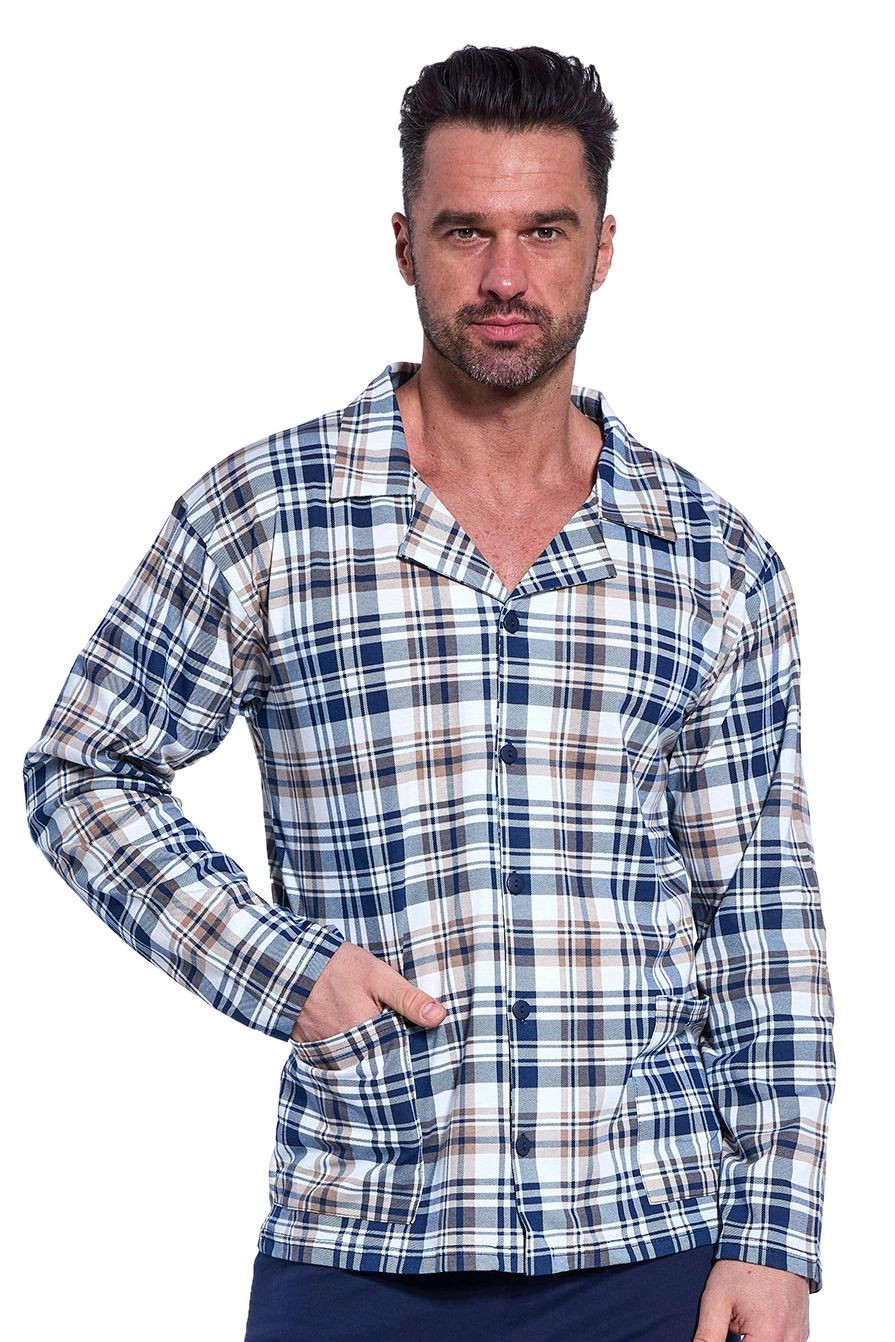 Pánské pyžamo 114/77 CORNETTE - z vysoce jakostní bavlny - károvaná košile s dlouhými rukávy a kapsami - zapínání na knoflíky - pohodlné tmavě modré dlouhé kalhoty