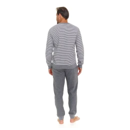 Pánské pyžamo 5248 dark grey Doctornap - z velmi kvalitní a příjemné bavlny - šedé tričko dlouhými rukávy - ozdobené pruhy - dlouhé šedé kalhoty s kapsami - materiálové složení trička: 80% bavlna + 20% polyester - certifikát OEKO-TEX Standard 100