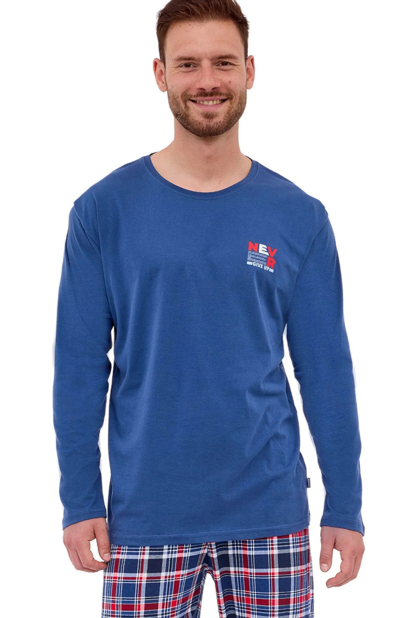 Pánské pyžamo 124/271 Never 2 CORNETTE - z vysoce jakostní bavlny - džínové tričko s dlouhými rukávy - na přední straně zdobené potiskem - pohodlné vzorované dlouhé kalhoty
