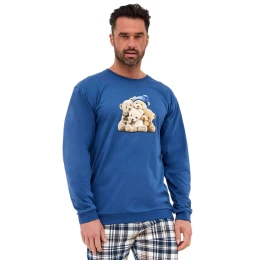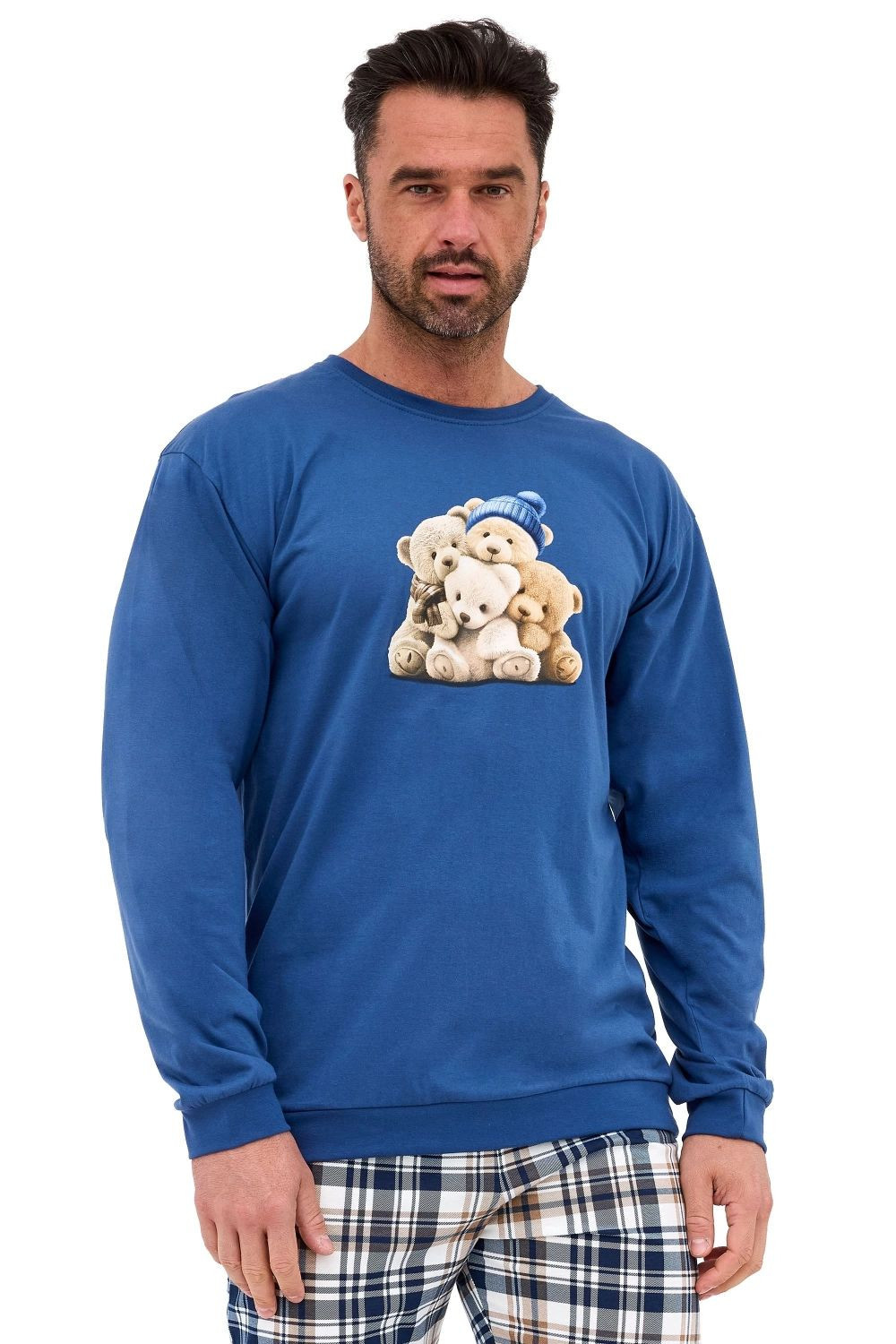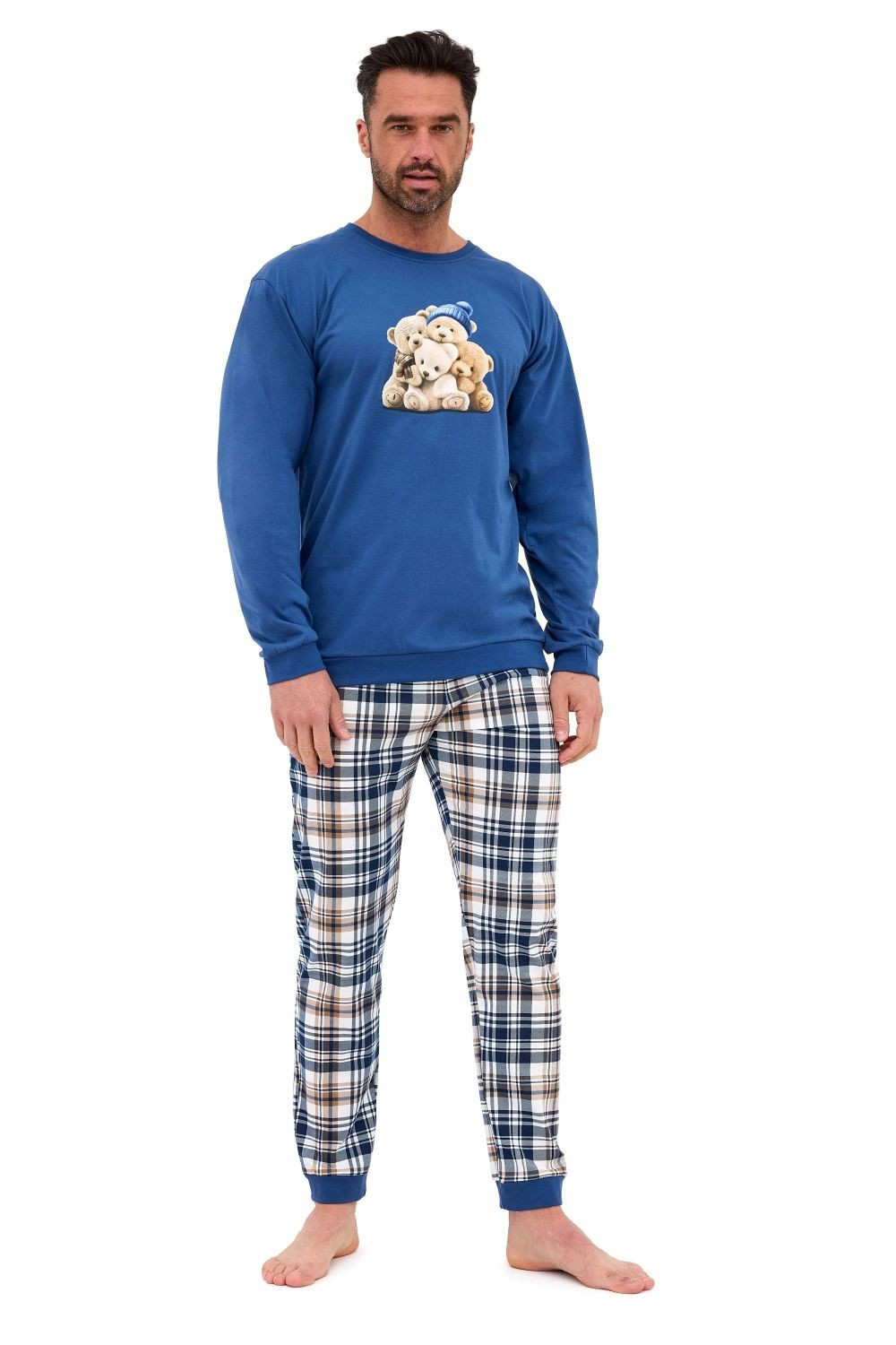 Pánské pyžamo 115/292 Bears CORNETTE - z vysoce jakostní bavlny - jeansové tričko s dlouhými rukávy - na přední straně zdobené potiskem - pohodlné vzorované dlouhé kalhoty - zakončené manžetami
