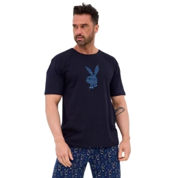Pánské pyžamo 326/190 Rabbit CORNETTE - z vysoce jakostní bavlny - tmavě modré tričko s krátkými rukávy - půlkulatý výstřih - ozdobené potiskem na přední straně - vzorované kraťasy