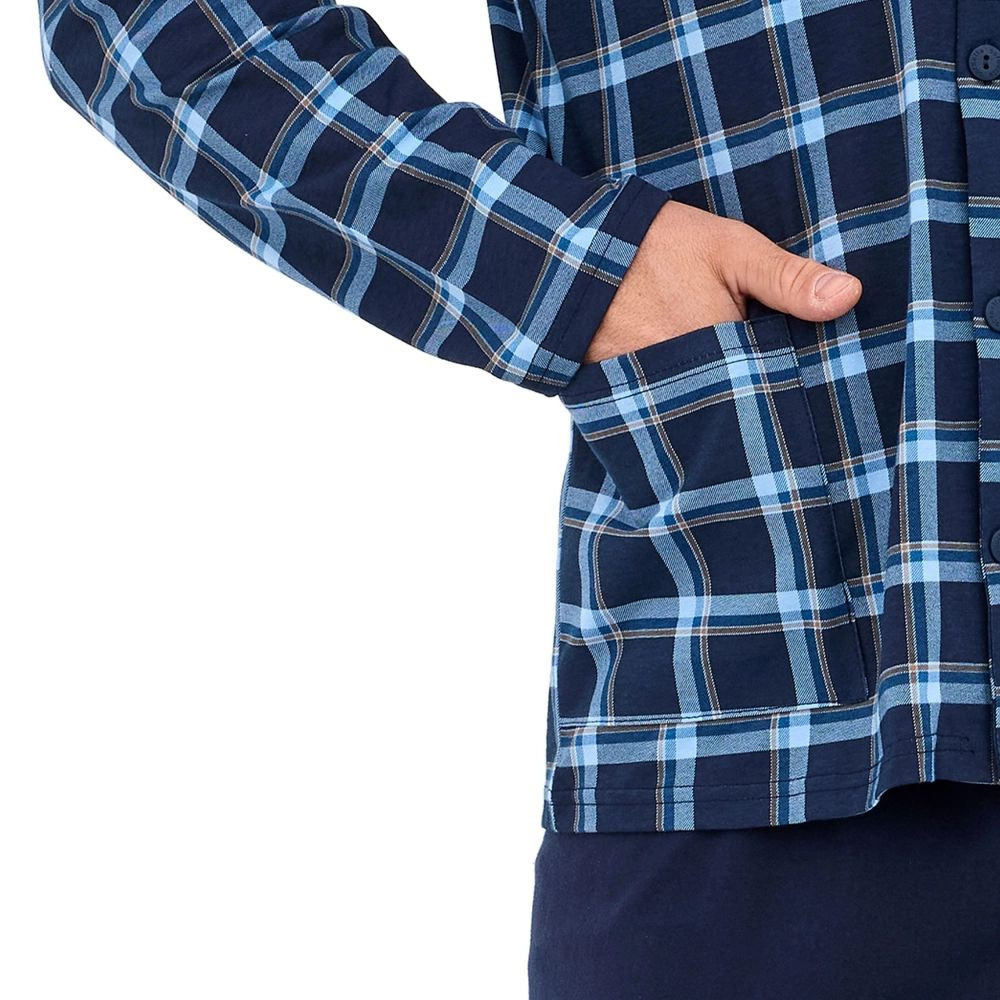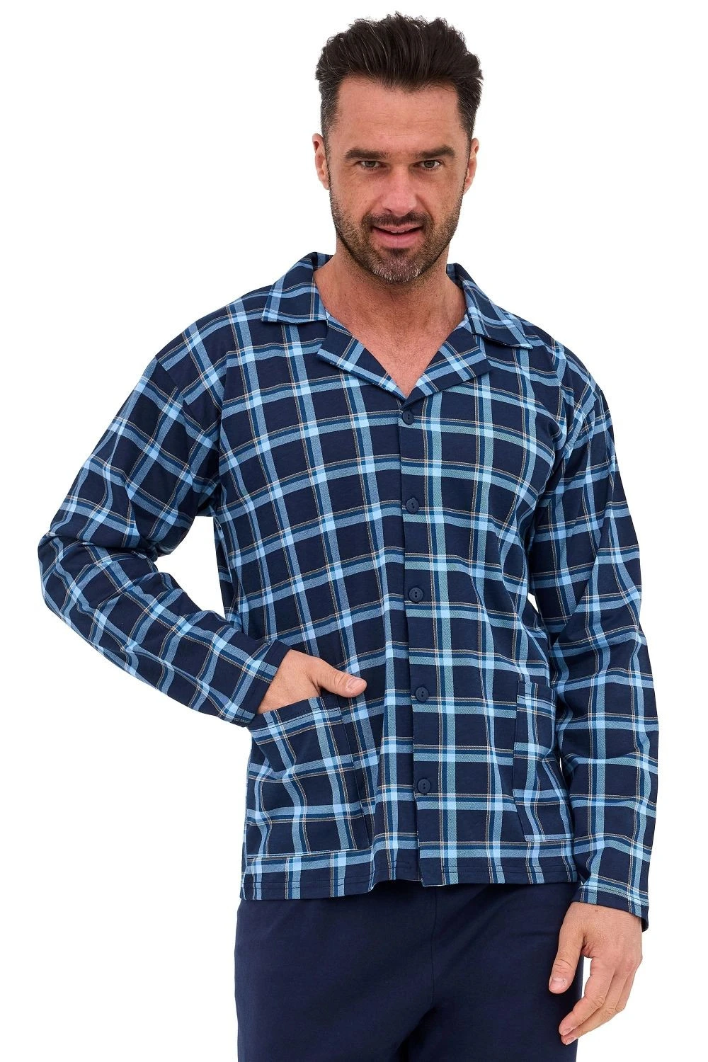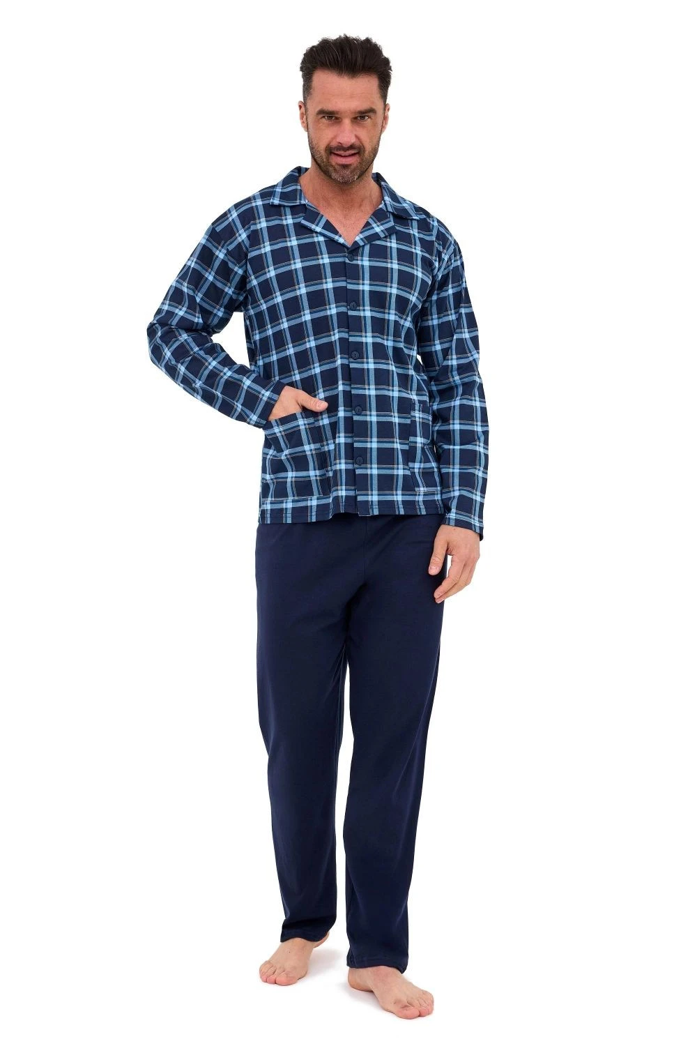 Pánské pyžamo 114/81 CORNETTE - z vysoce jakostní bavlny - károvaná košile s dlouhými rukávy a kapsami - zapínání na knoflíky - pohodlné tmavě modré dlouhé kalhoty