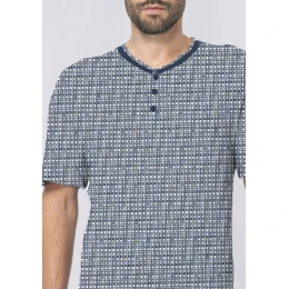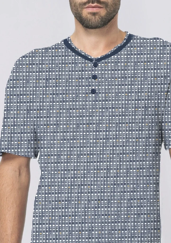 Pánské bavlněné pyžamo italské značky Karelpiu. Pyžamo ze 100% bavlny, je velmi příjemné a pohodlné. Tričko má výstřih do V a légu se třemi knoflíky. Na levé přední straně je našitá kapsička. Tričko má krátký rukáv. Kraťasy mají v pase pohodlnou pružnou gumu. Pyžamo je ušité z příjemné bavlny.