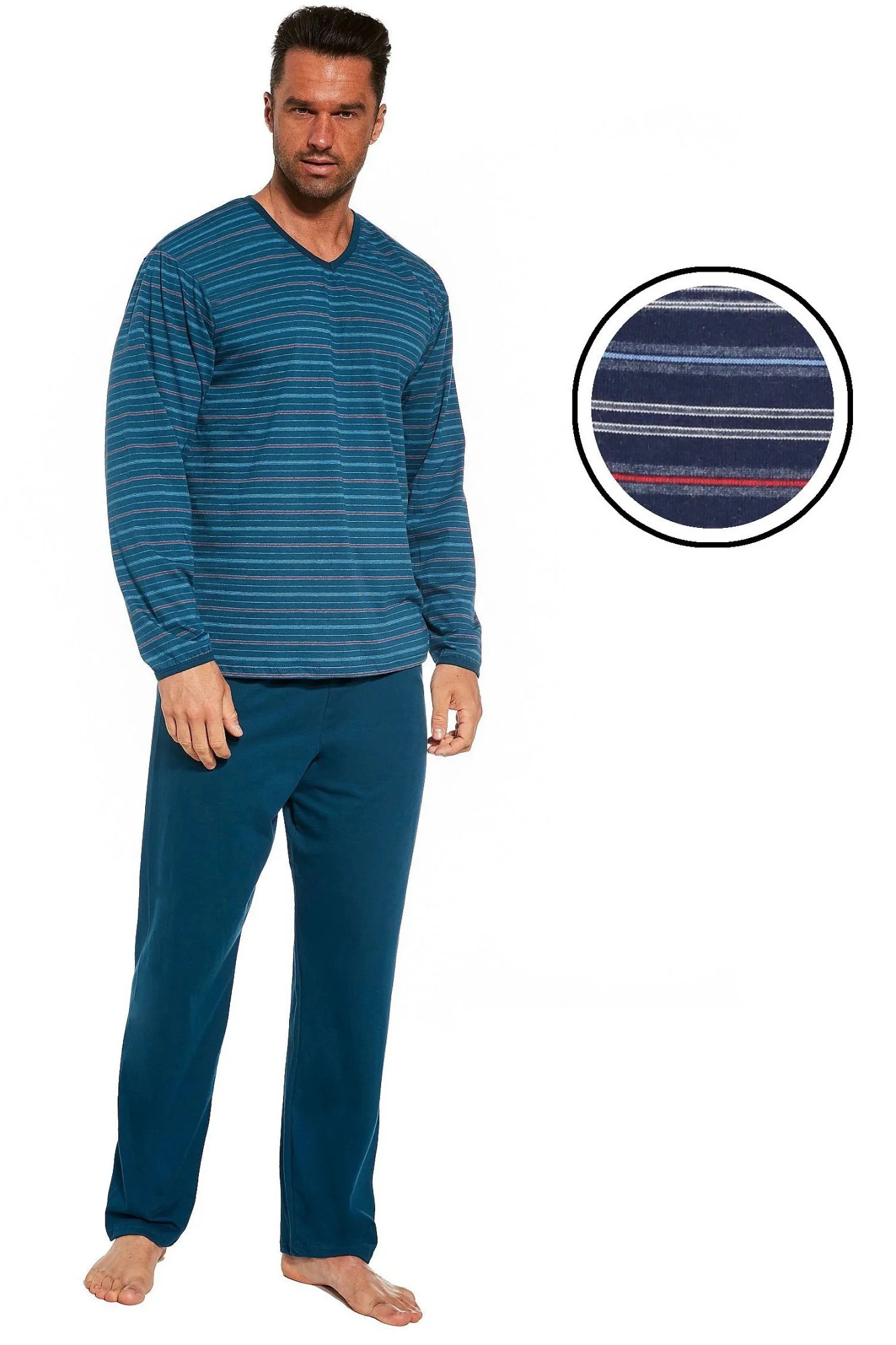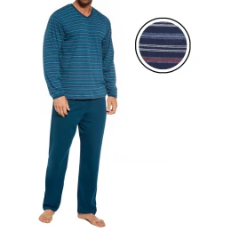 Pánské pyžamo 139/41 Various CORNETTE - z vysoce jakostní bavlny - pruhované tričko s dlouhými rukávy - pohodlné jednobarevné dlouhé kalhoty