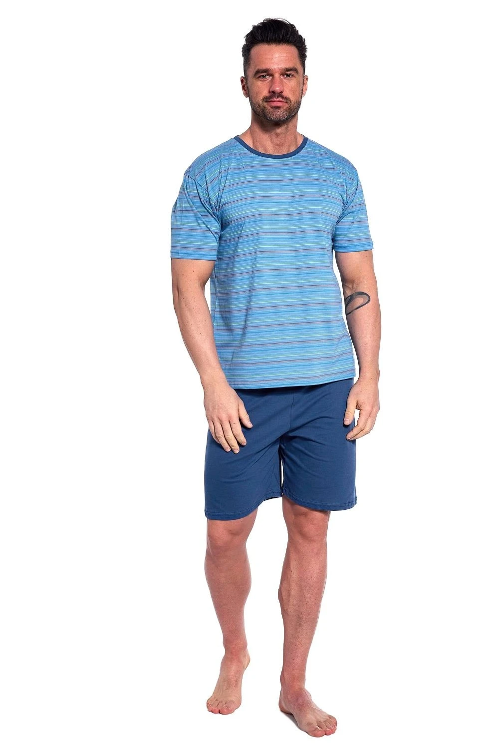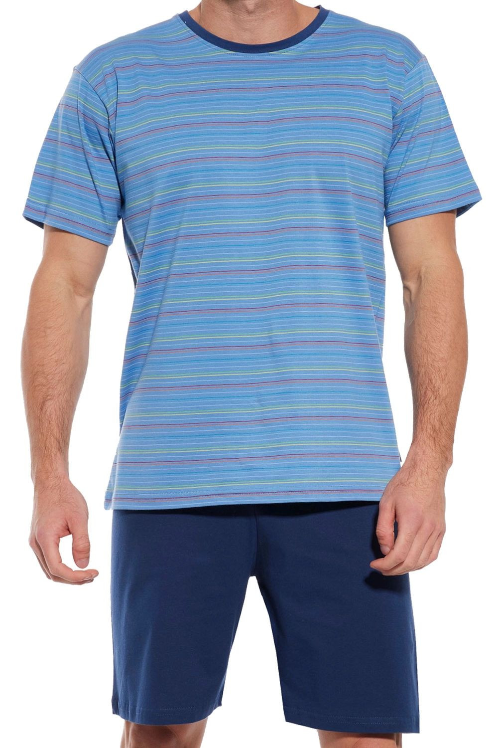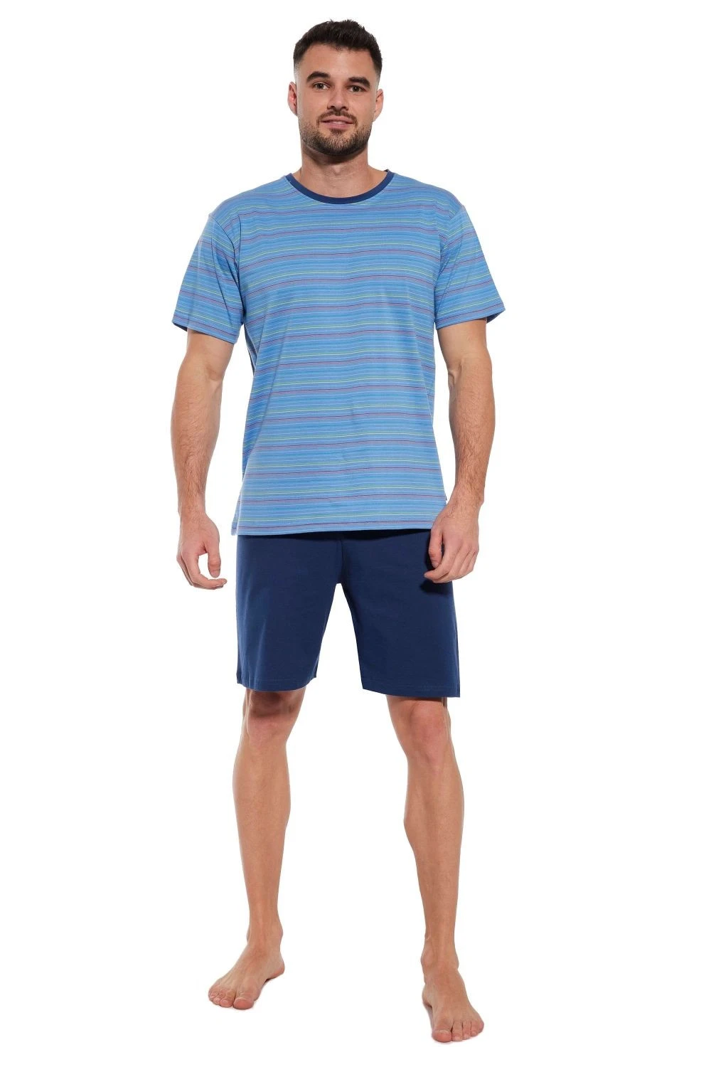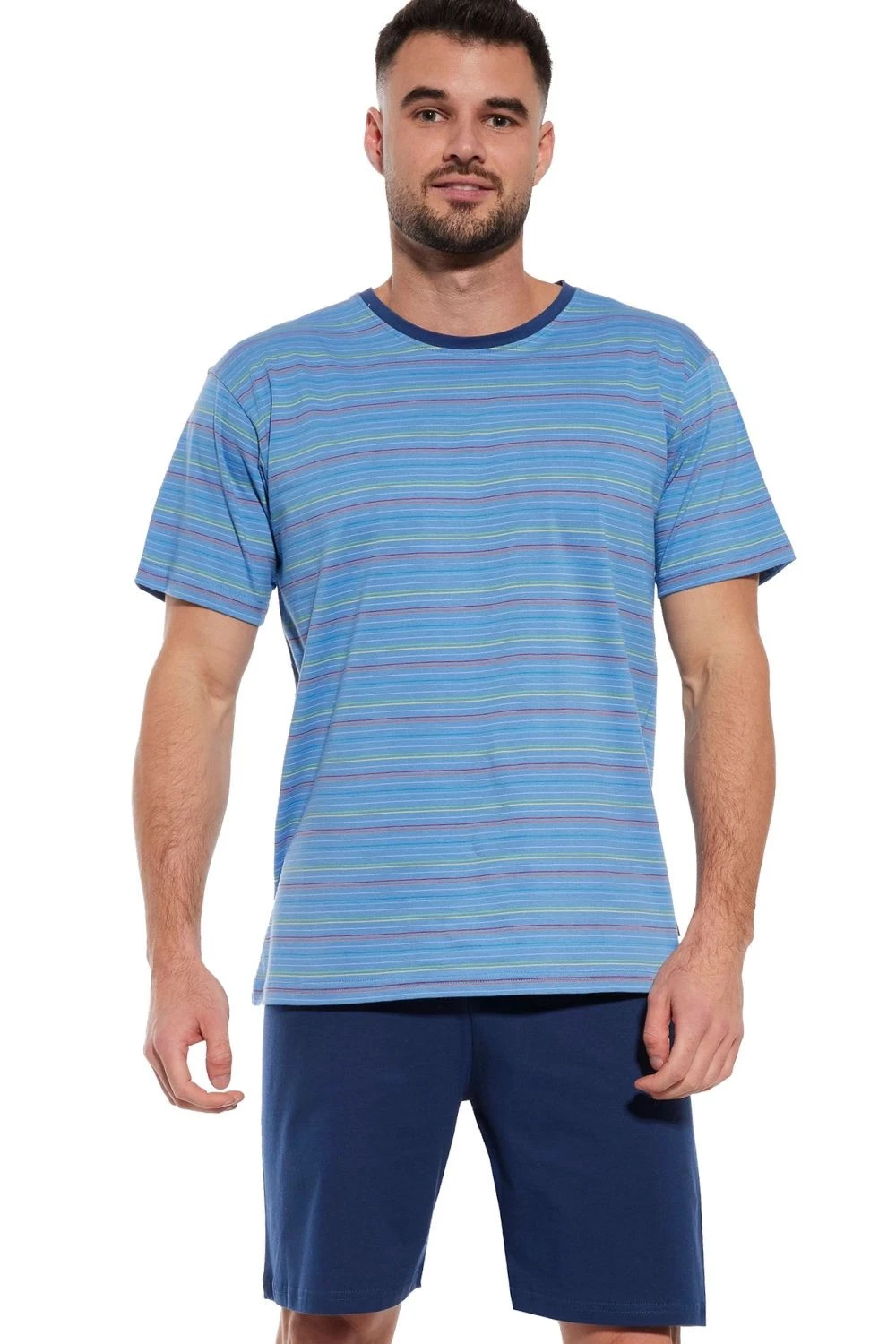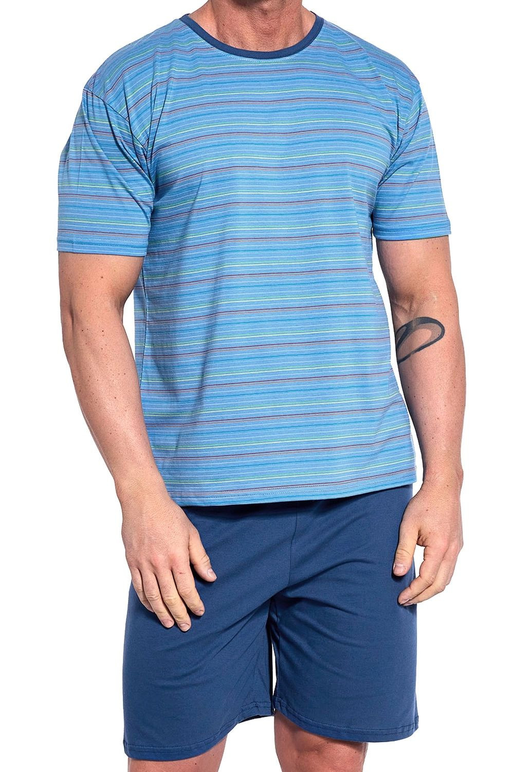 Pánské pyžamo 338/47 Various CORNETTE - světle modrá barva - z vysoce jakostní bavlny - pruhované tričko s krátkými rukávy - pohodlné jednobarevné kraťasy