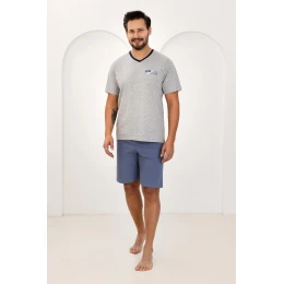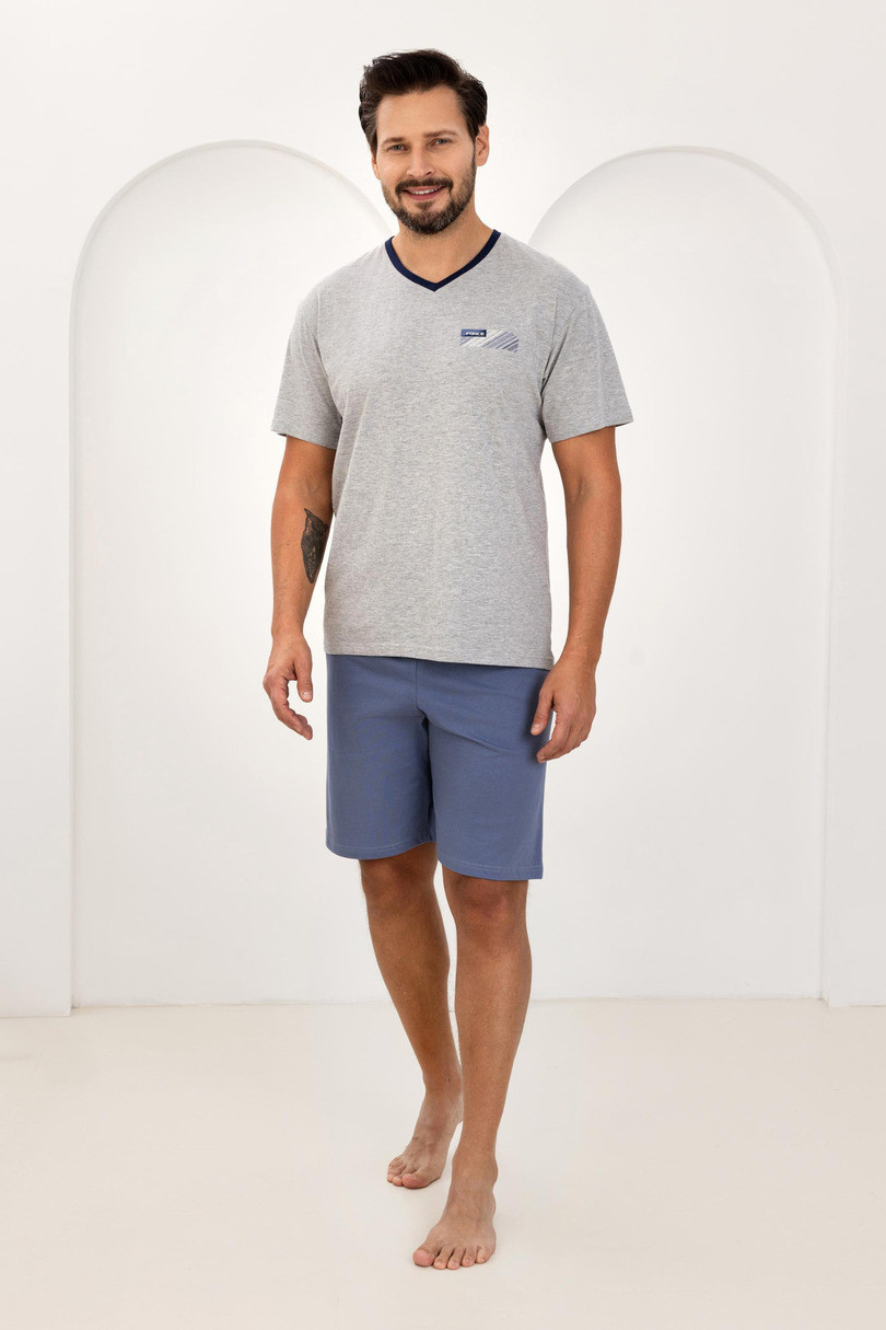 Zestaw składa się z koszulki z krótkim rękawem i dekoltem w szpic, który zapewnia swobodę noszenia i klasyczny, męski wygląd. Uzupełnieniem są krótkie, jednolite spodenki, idealne na cieplejsze dni. W pasie zastosowano gumkę obszytą bawełną, co zwiększa komfort użytkowania i zapobiega podrażnieniomEAN čárové kódy zboží jsou: