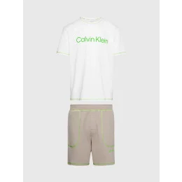Pánské pyžamo NM2471E bílo/béžové - Calvin Klein