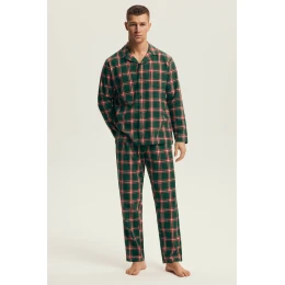 Piżama męska NUT 43460 AW25 – klasyczna flanelowa krata na chłodne wieczory