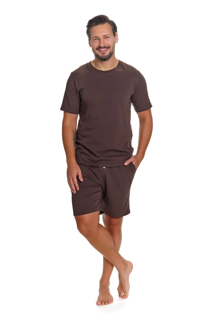 Souprava je doplněna pohodlnými pánskými boxerkami, které jsou v pase zakončeny ozdobnou gumičkou s logem značky DR NAP. Toto řešení zaručuje dokonalé padnutí, stabilitu a moderní vzhled. Pyžamo PMB 4332 je vynikající volbou pro muže, kteří ocení jednoduchost, kvalitu a funkčnost.