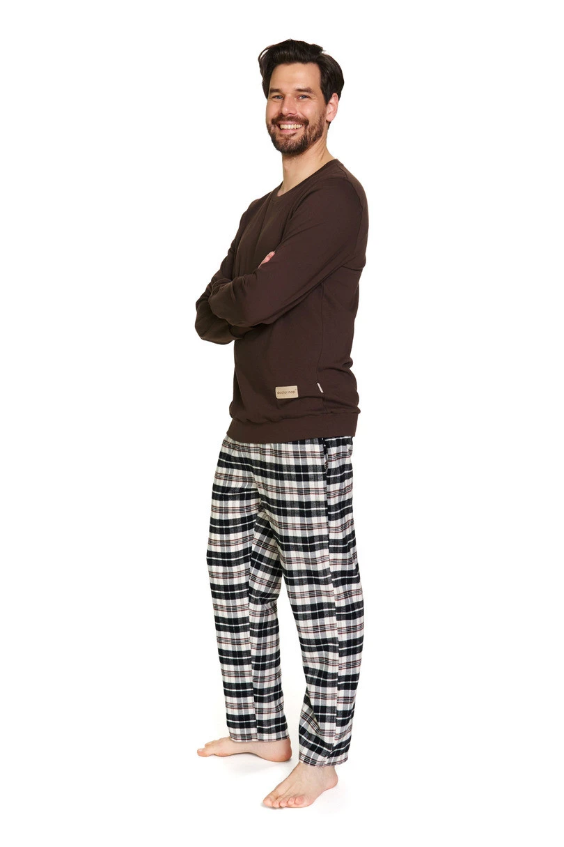 PMB.7334 Pánské pyžamo BIG značky Doctor Nap má klasický design s ohledem na pohodlí a kvalitu. Je vyrobeno ze 100% přírodní, vzdušné bavlny, je měkké a příjemné na dotek a zaručuje naprosté pohodlí při spánku i odpočinku. Součástí soupravy je hnědá blůza s rovným výstřihem a praktickými manžetami se šňůrkami. Kostkované kalhoty mají praktické kapsy a pružné lemy v pase a na nohavicích, které dokonale padnou a zajišťují volnost pohybu. Jedná se o funkční a stylovou soupravu, která se skvěle hodí do domácnosti.