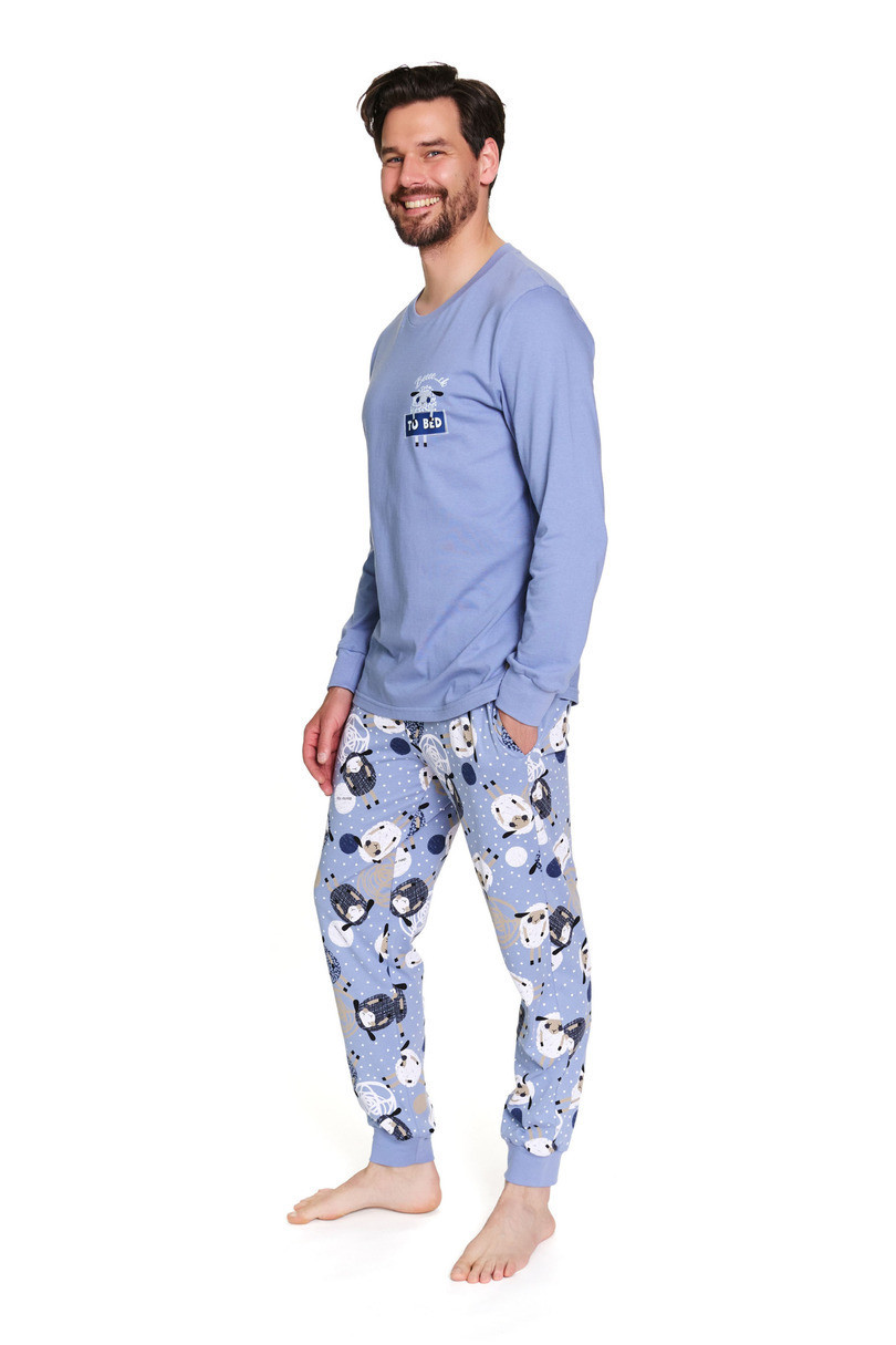 PMB.7347 značky Doctor Nap je pánský pyžamový komplet kombinující pohodlí a moderní design. Je vyroben ze 100% přírodní, prodyšné bavlny, která zaručuje měkkost, prodyšnost a pohodlí během spánku i doma. Komplet se skládá z modrého trička s dlouhým rukávem a originálním potiskem, který dodává celému kompletu lehký, ležérní charakter. Kalhoty rovného střihu, vybavené praktickými kapsami a zakončené v pase šňůrkou, zajišťují volnost pohybu a perfektně padnou. Jedná se o skvělou volbu pro muže, kteří ocení pohodlí a přírodní materiál příjemný na dotek.