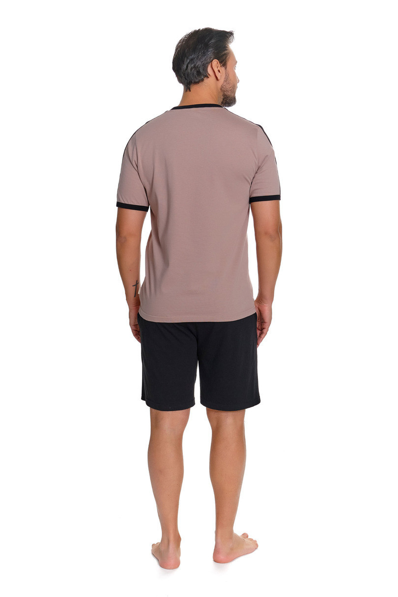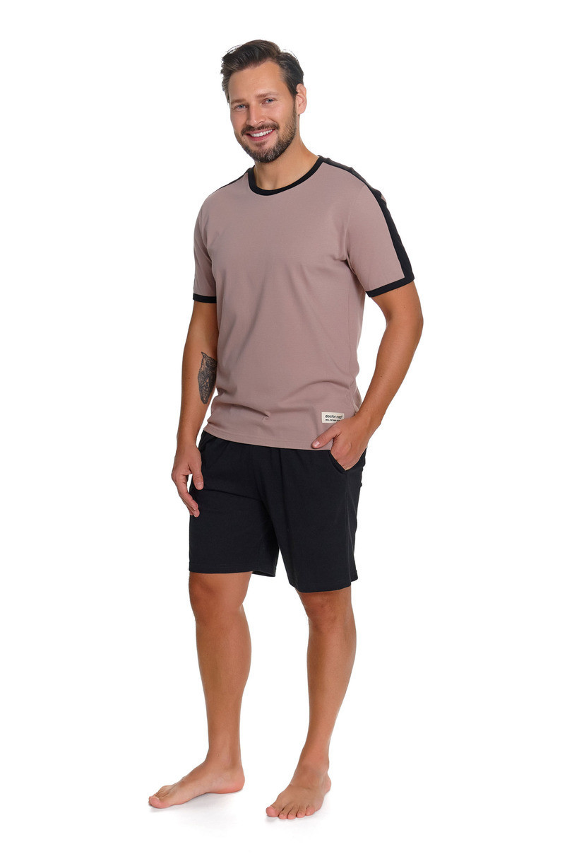 Hladké tričko v módním béžovém odstínu je opatřeno decentním logem Doctor Nap, které podtrhuje minimalistický a elegantní charakter soupravy. Volný, pohodlný střih neomezuje v pohybu a zaručuje plný komfort používání. Pevné šortky dodávají soupravě lehce sportovní styl a praktické kapsy na bocích zvyšují funkčnost.