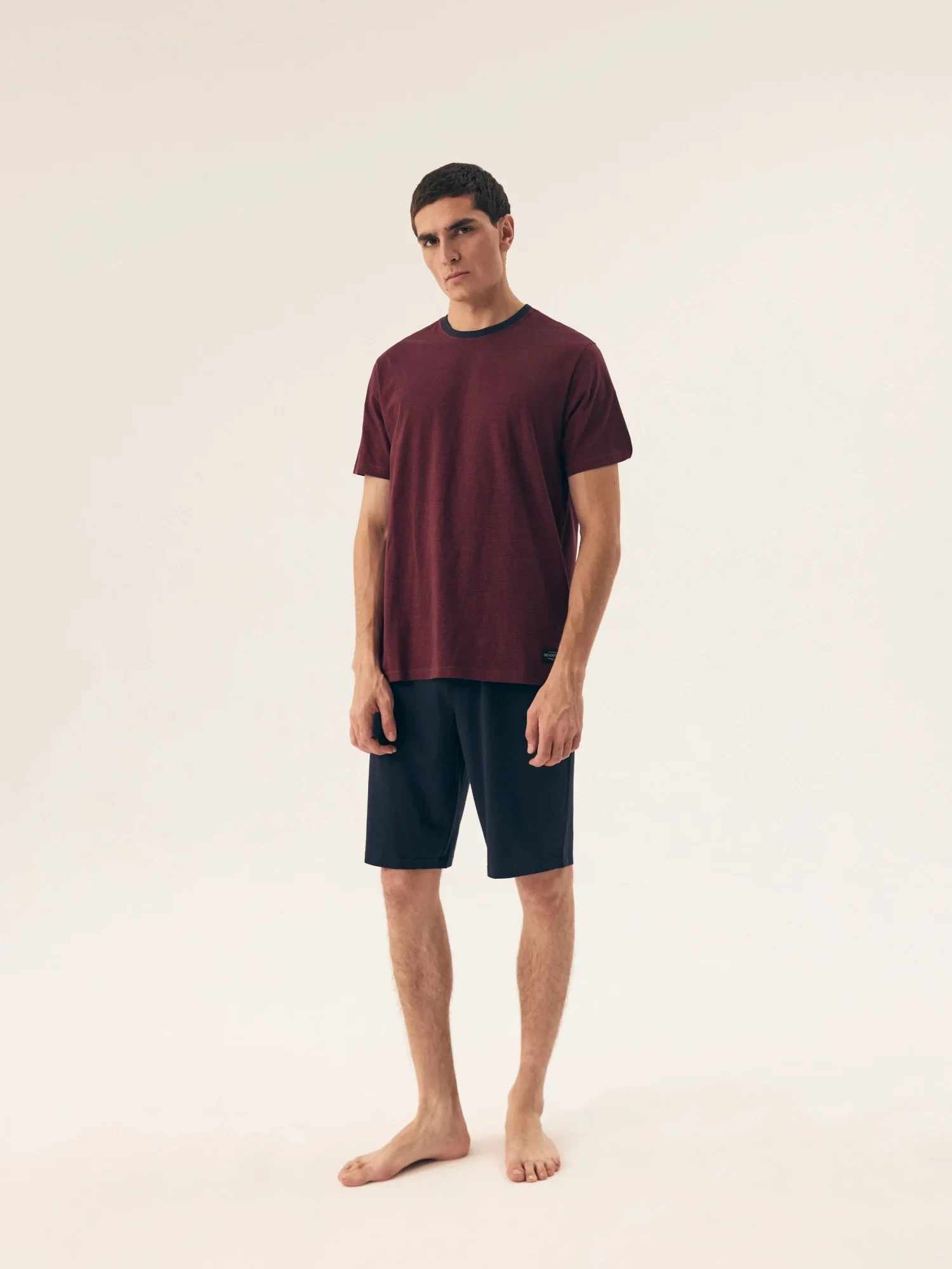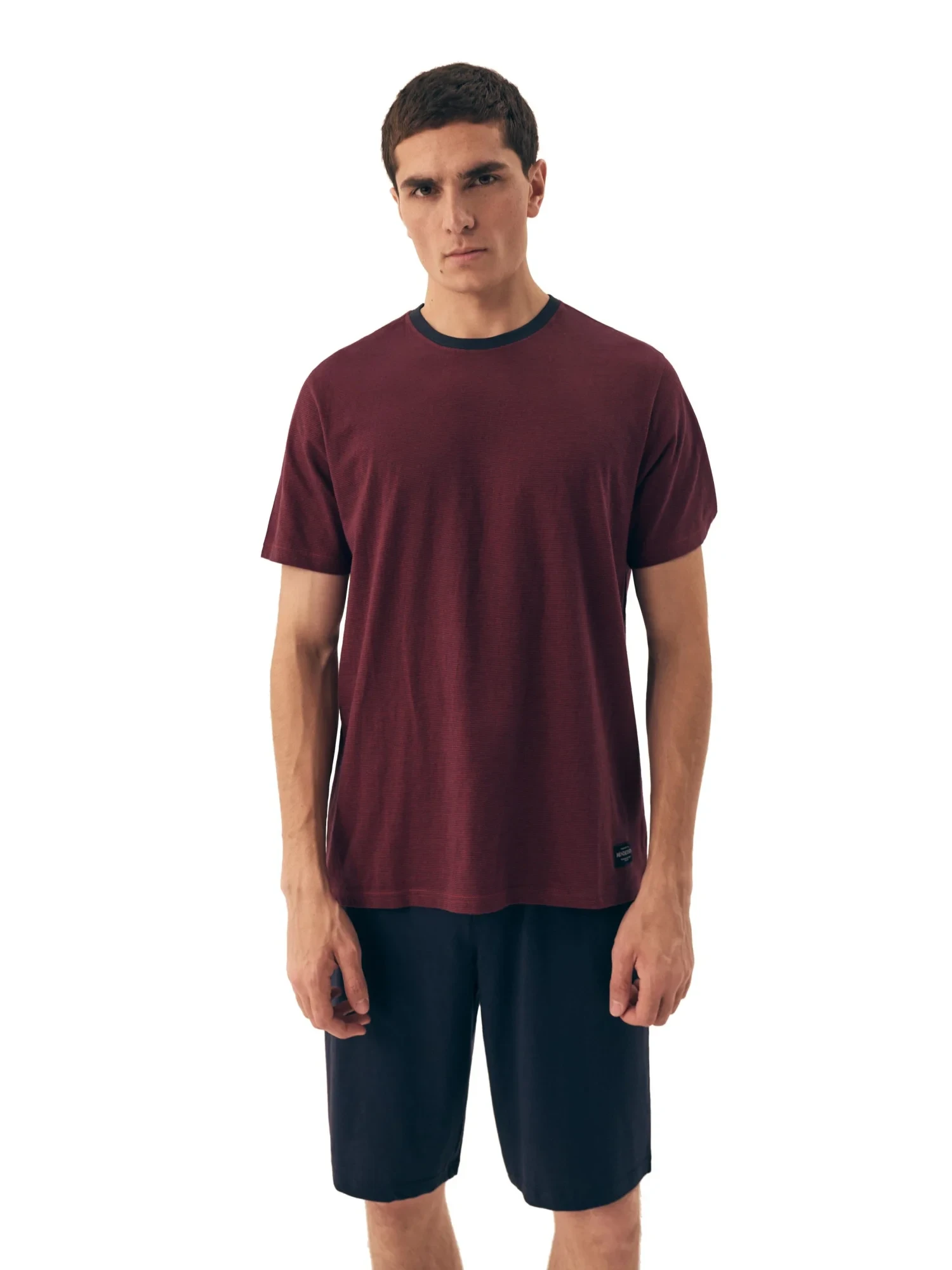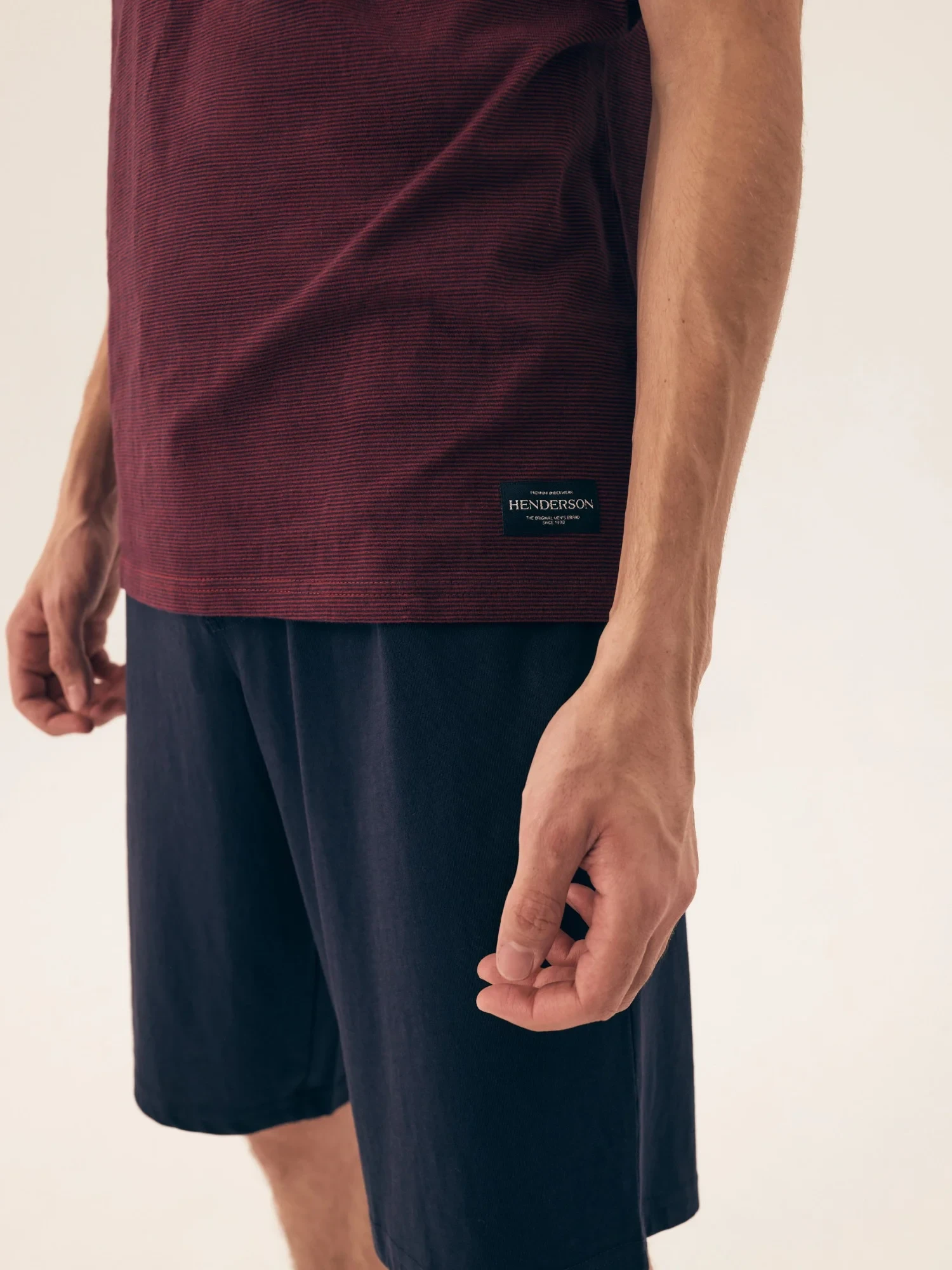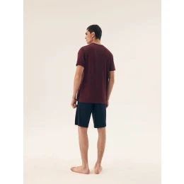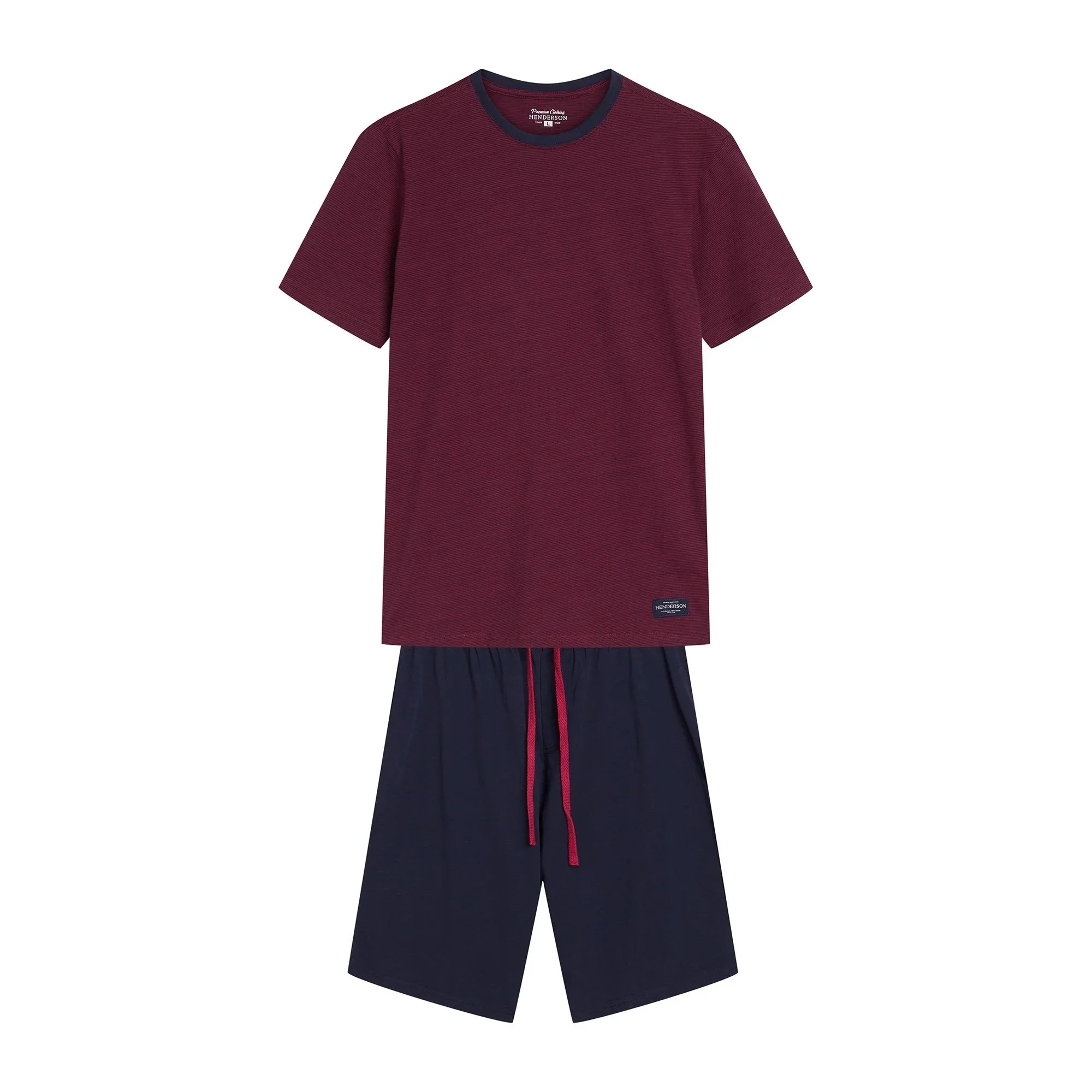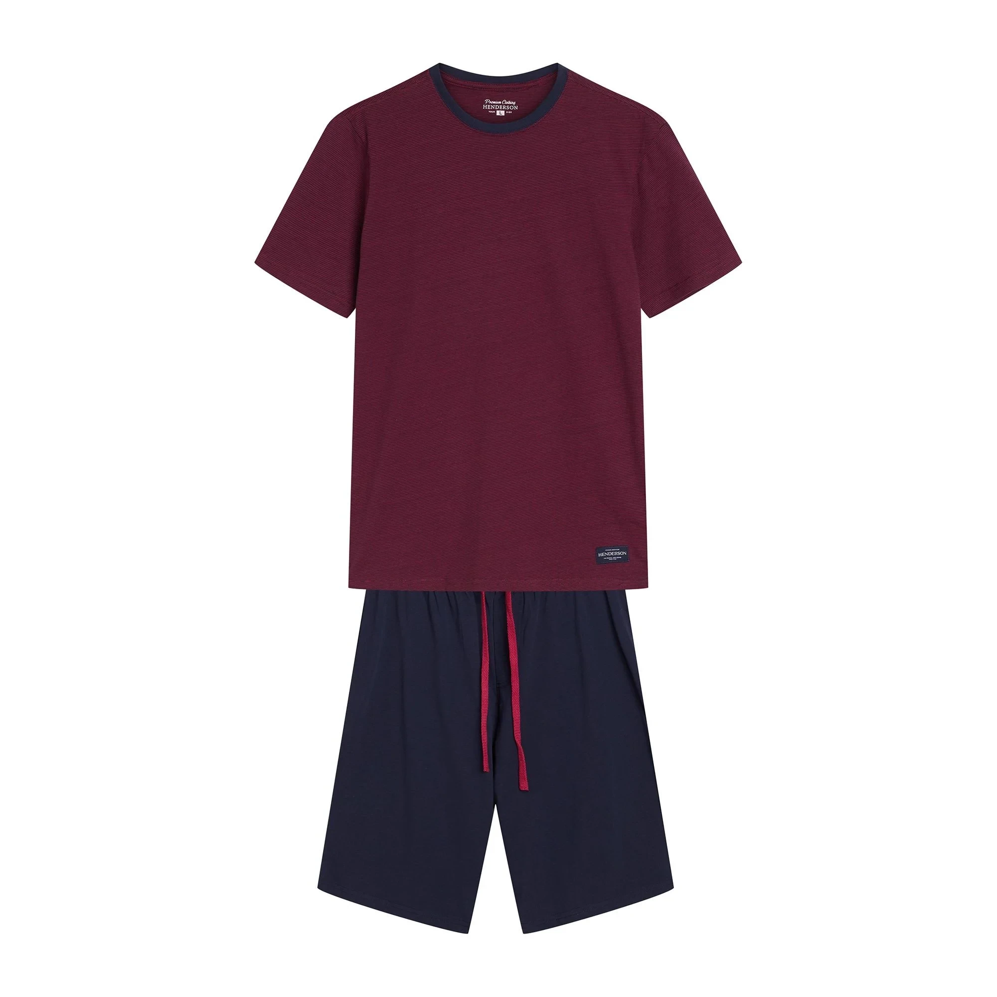 Pánské pyžamo 42633 Dive red HENDERSON - z vysoce jakostní bavlny - červené tričko s krátkými rukávy - jednobarevné kraťasy - široký elastický pás se stahovací šňůrkou