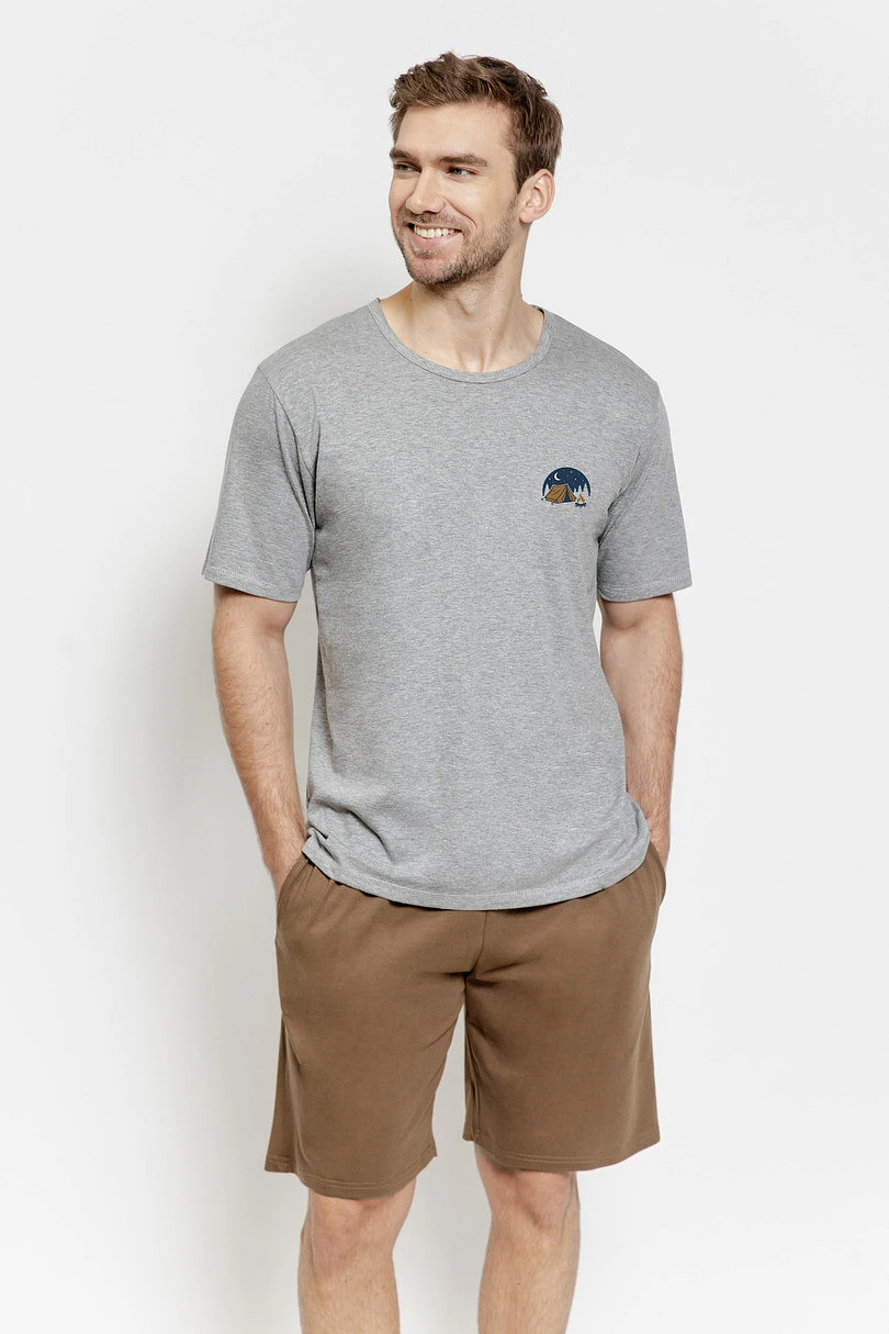 Pánské pyžamo Gabriel 3576 je pohodlná a praktická souprava ideální pro teplé noci a domácí relaxaci. Souprava se skládá z trička s krátkým rukávem a krátkých šortek v kontrastní barvě, která celku dodává moderní a sportovní charakter.