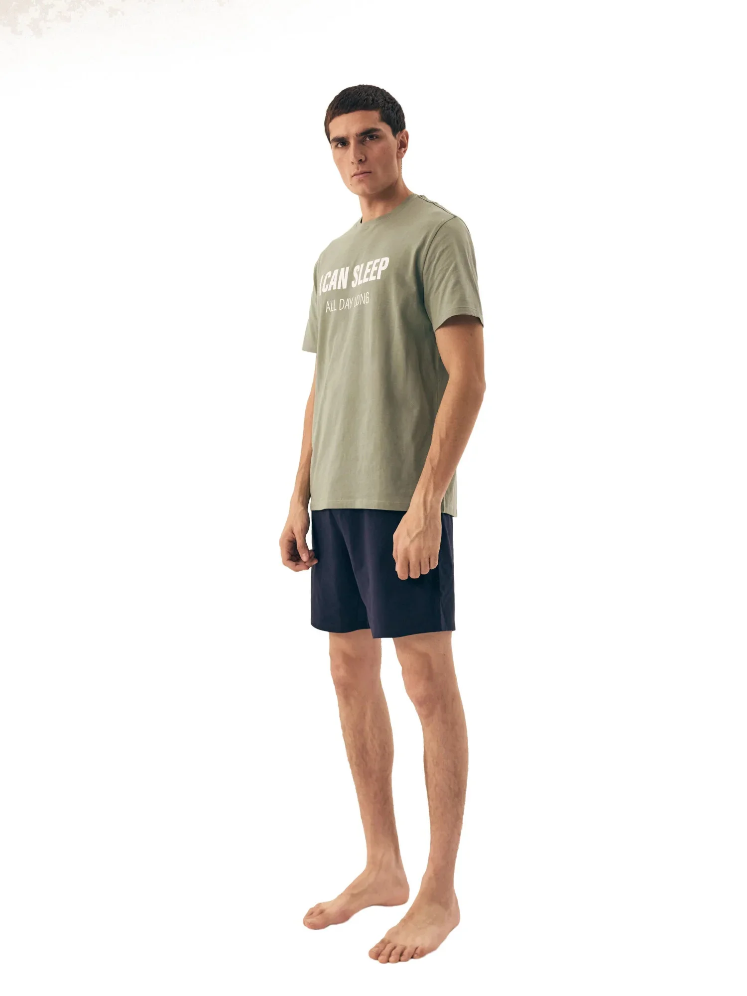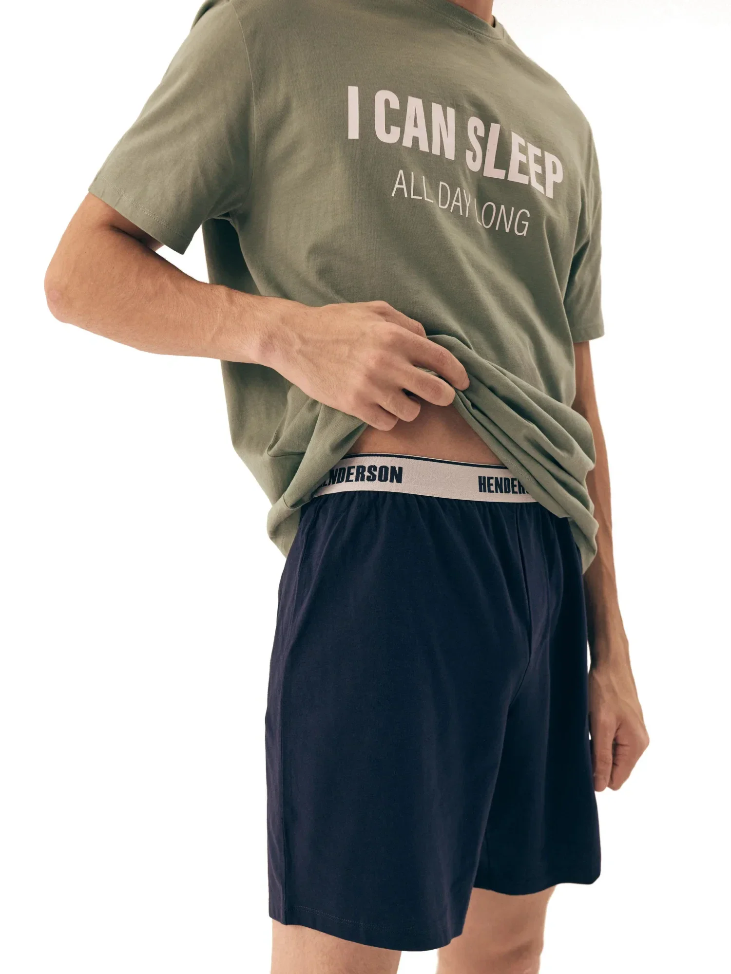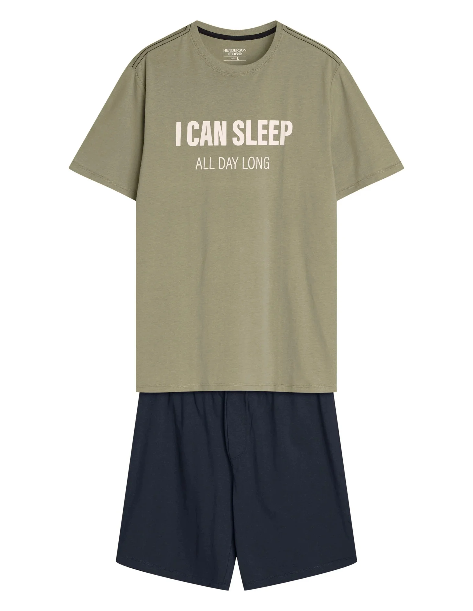 Pánské pyžamo 42614 Sleeper green HENDERSON - z vysoce jakostní bavlny - červené tričko s krátkými rukávy - zdobené potiskem na přední straně - jednobarevné šortky - elastický pas s nápisem Henderson