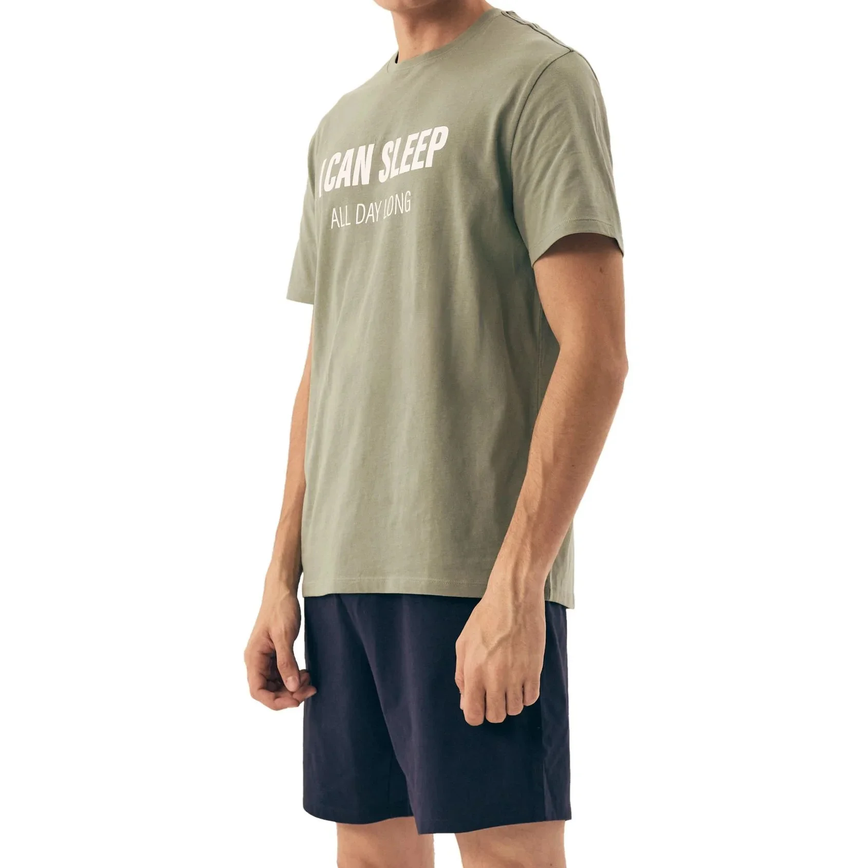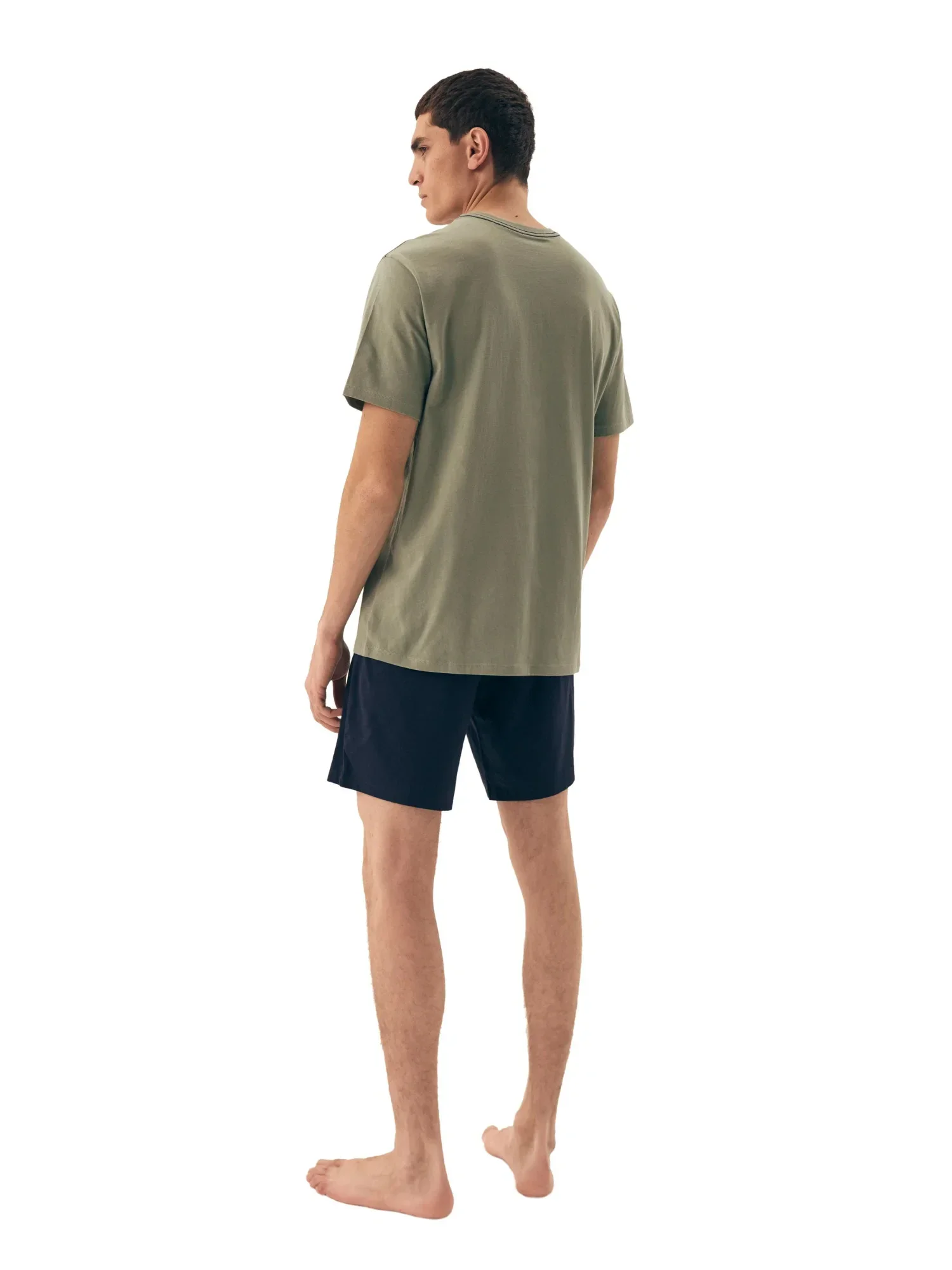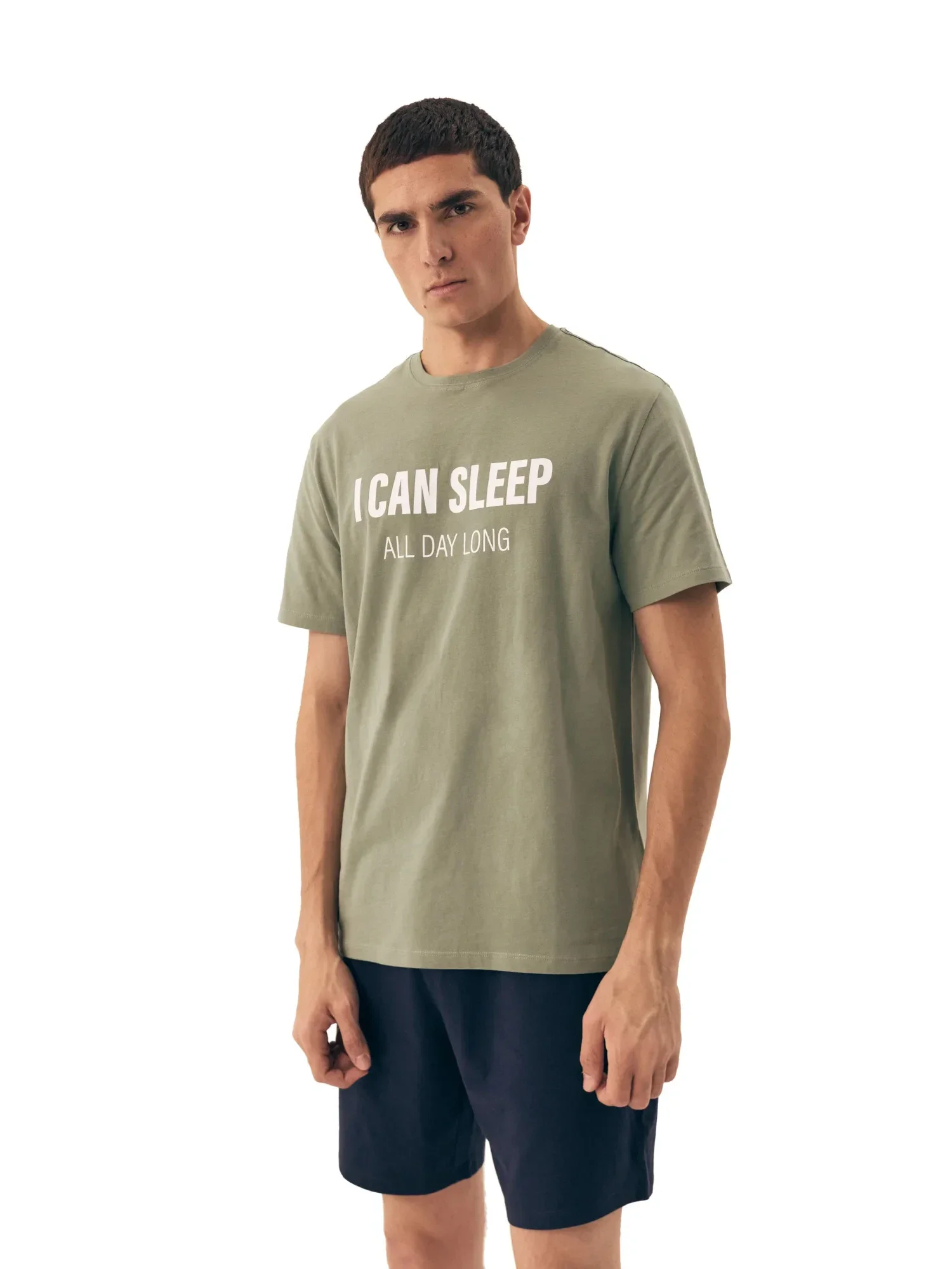 Pánské pyžamo 42614 Sleeper green HENDERSON - z vysoce jakostní bavlny - červené tričko s krátkými rukávy - zdobené potiskem na přední straně - jednobarevné šortky - elastický pas s nápisem Henderson