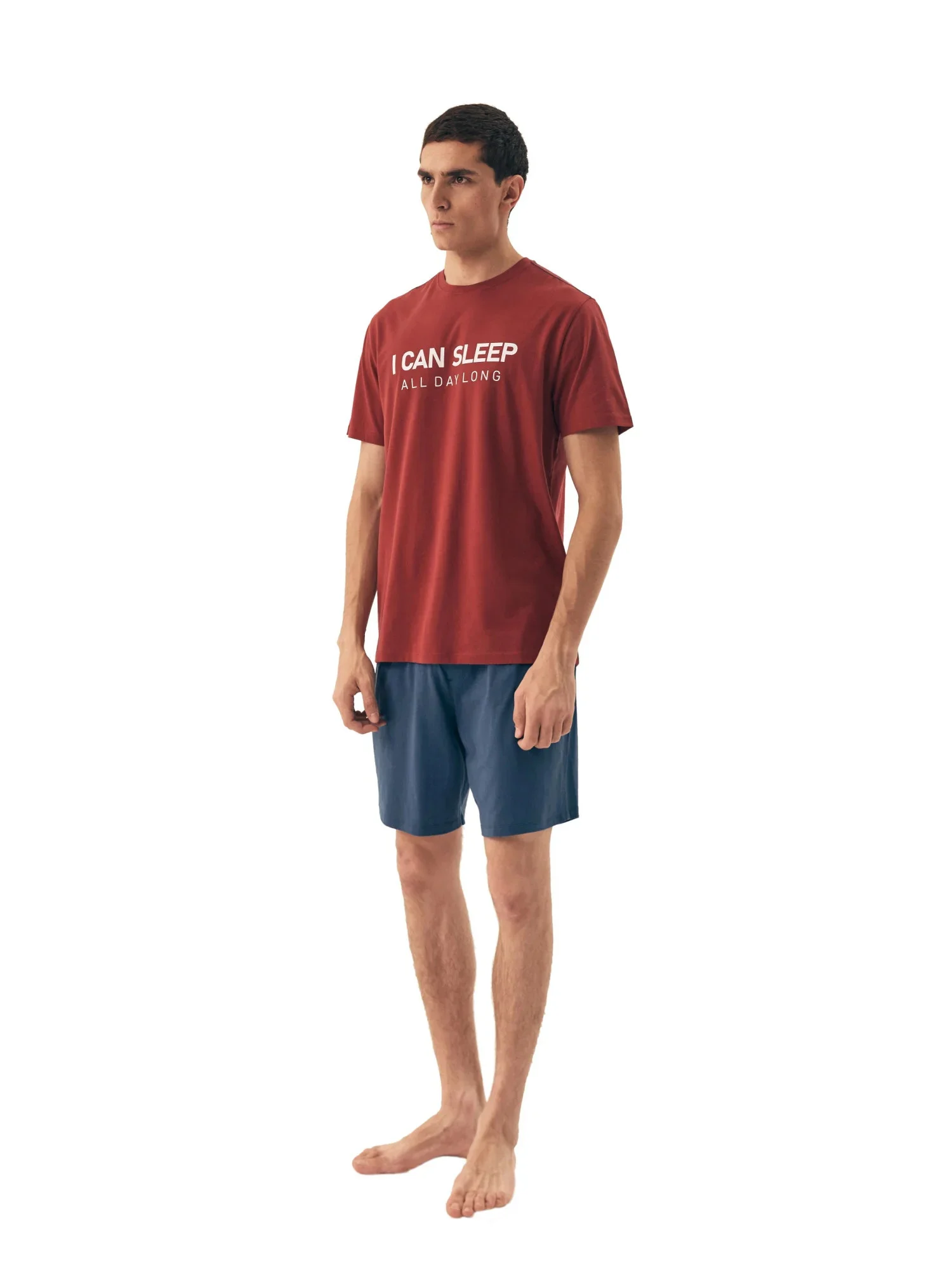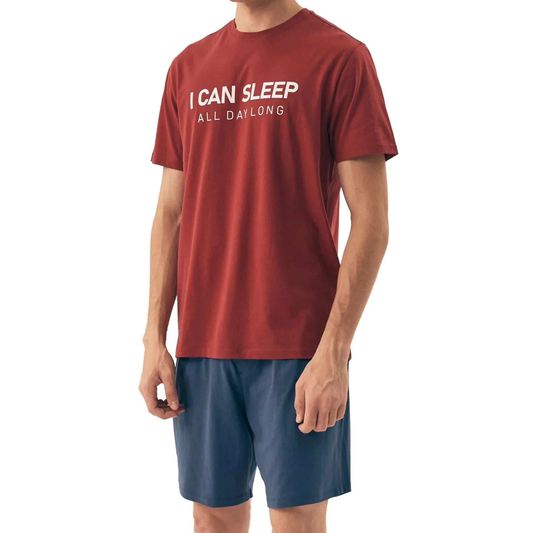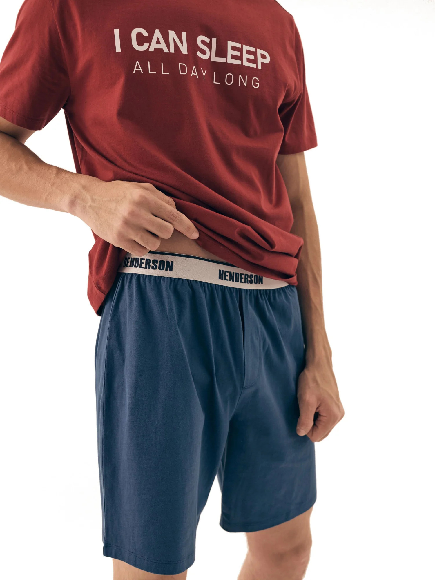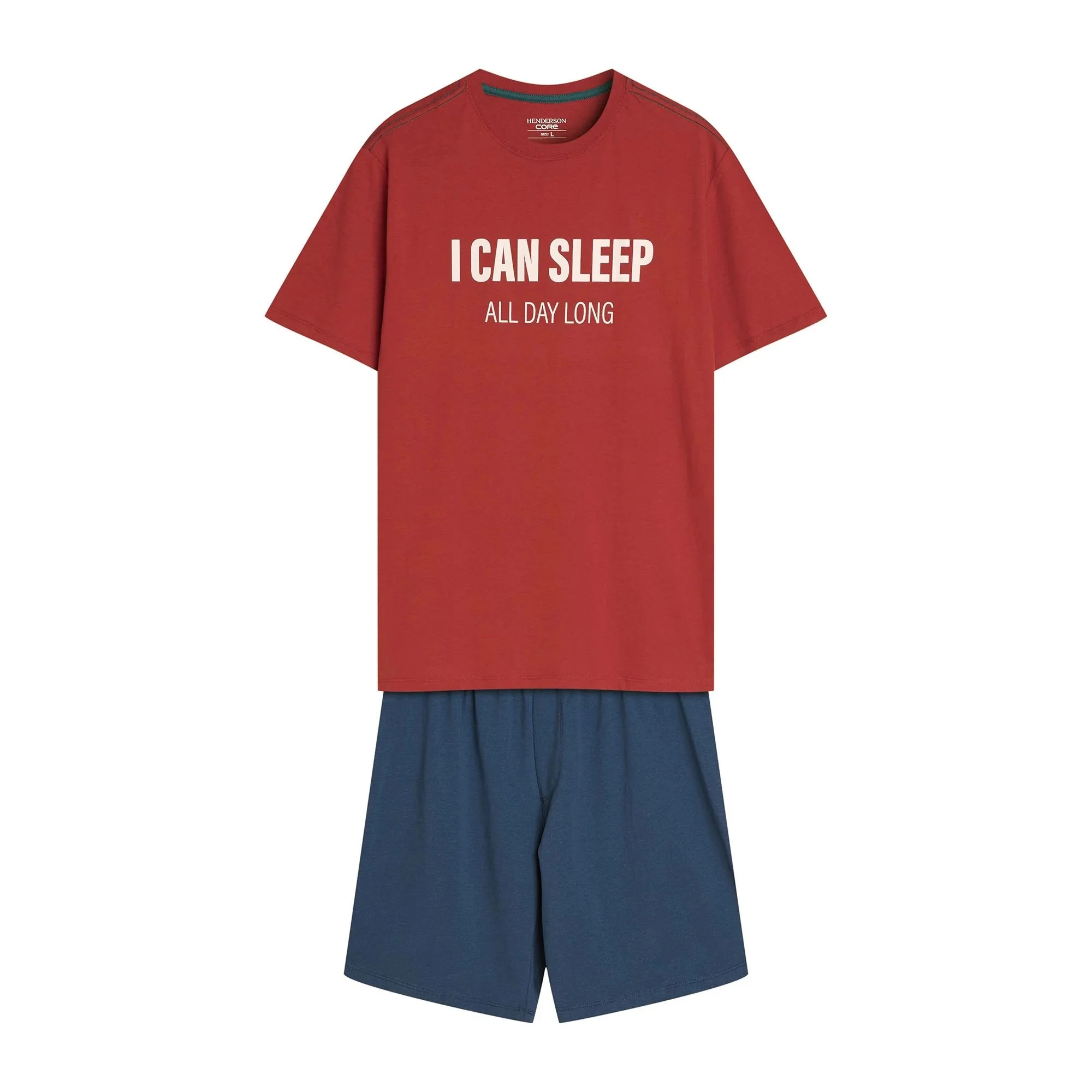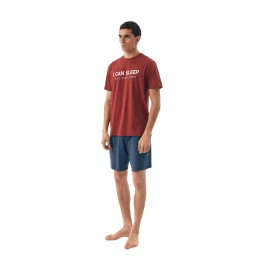 Pánské pyžamo 42614 Sleeper red HENDERSON - z vysoce jakostní bavlny - červené tričko s krátkými rukávy - zdobené potiskem na přední straně - jednobarevné šortky - elastický pas s nápisem Henderson