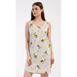 Dámská bavlněná noční košile na ramínka Včelky. Noční košile se širšími ramínky a kulatým výstřihem má praktické kapsy, je potištěna obrázky včelek. Použitý materiál s obsahem bavlny 100% je příjemný a poddajný na dotek. Košile je vhodná i na denní nošení, obvzlášť ji oceníte v horkých letních dnech.