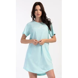 Dámské bavlněné domácí šaty s krátkým rukávem Wonderful. Domácí jednobarevné šaty s kulatým výstřihem a kapsami zdobí na hrudi obrázek květu a nápys 'Wonderful'. Použitý bavlněný materiál je příjemný a poddajný na dotek. Šaty jsou pohodlné, vhodné na spaní i na denní nošení.