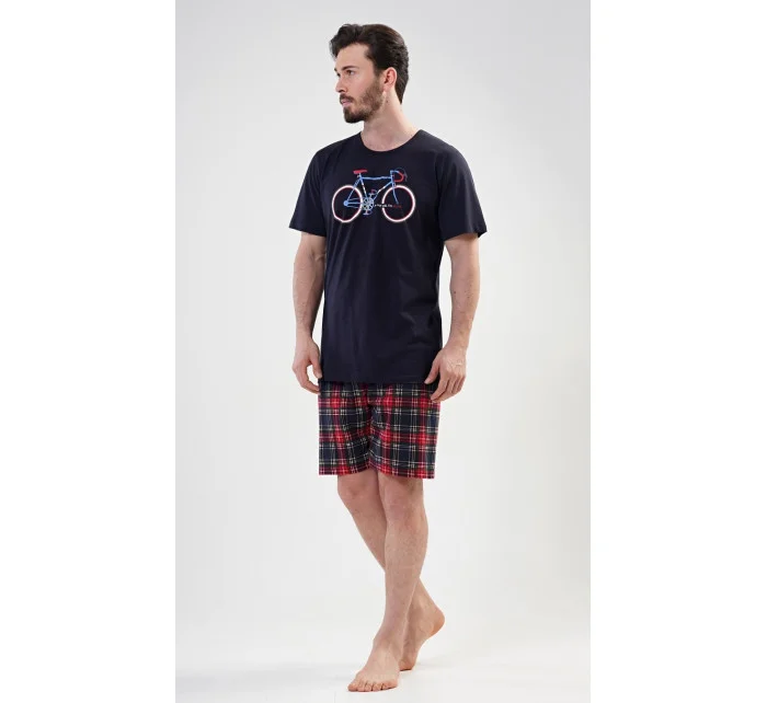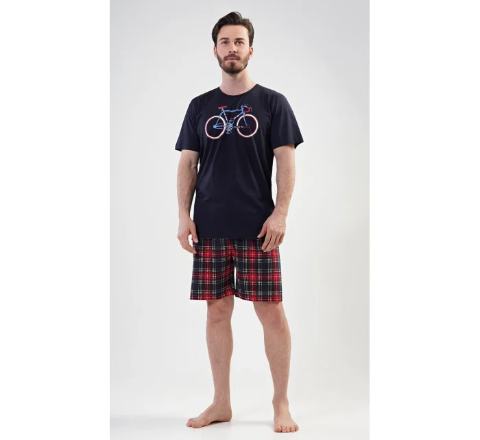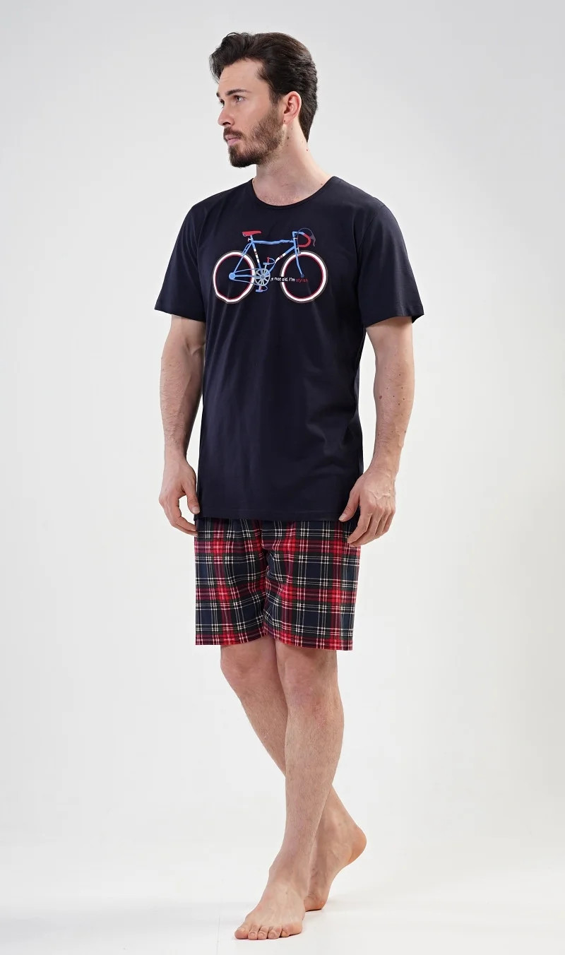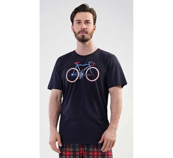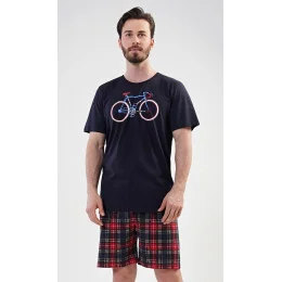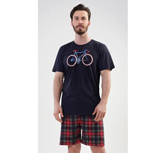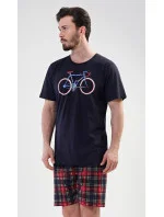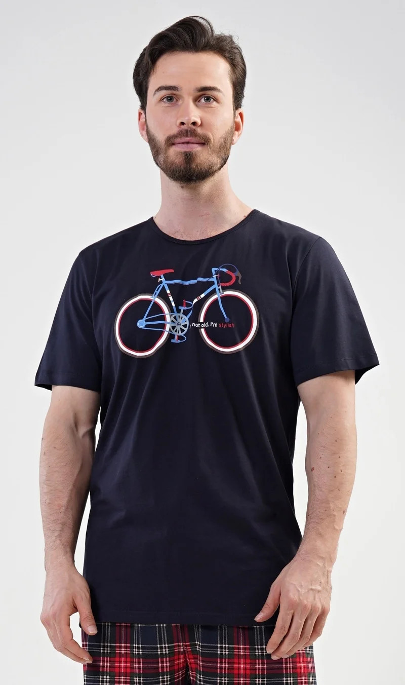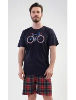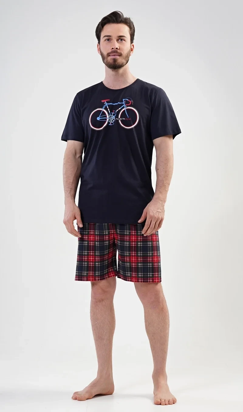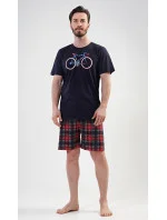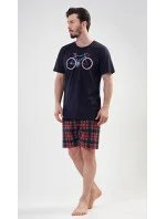 Pánské bavlněné pyžamo šortky Old bike. Pánské pyžamo se skládá z trička s krátkým rukávem a krátkých šortkových kalhot. Na tričku je obrázek kola a nápis I´m not old, I´m stylish. Výrazné tričko vhodně doplňují kostkované kalhoty. Šortky jsou bez kapes, mají gumu a šňůrku na stažení. Použitý materiál s podílem bavlny 100% je příjemný a poddajný na dotek. Pyžamo je vhodné i na denní nošení.