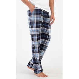 Pánské bavlněné pyžamové kalhoty Bruno. Kostkované kalhoty mají v pase gumu, šňůrku na stažení a praktické kapsy. Mateiriál s podílem bavlny 100% je příjemný a poddajný na dotek.