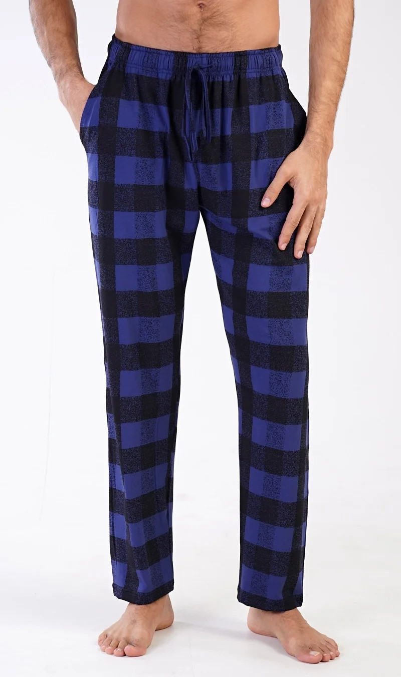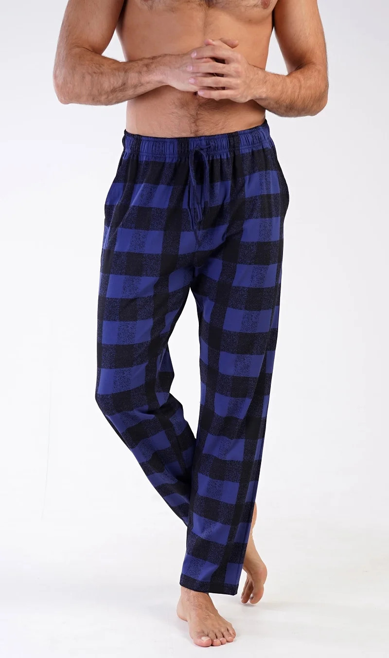 Pánské bavlněné pyžamové kalhoty John. Kostkované kalhoty mají v pase gumu, šňůrku na stažení a praktické kapsy. Mateiriál s podílem bavlny 100% je příjemný a poddajný na dotek. Kalhoty jsou vhodné i na denní nošení.