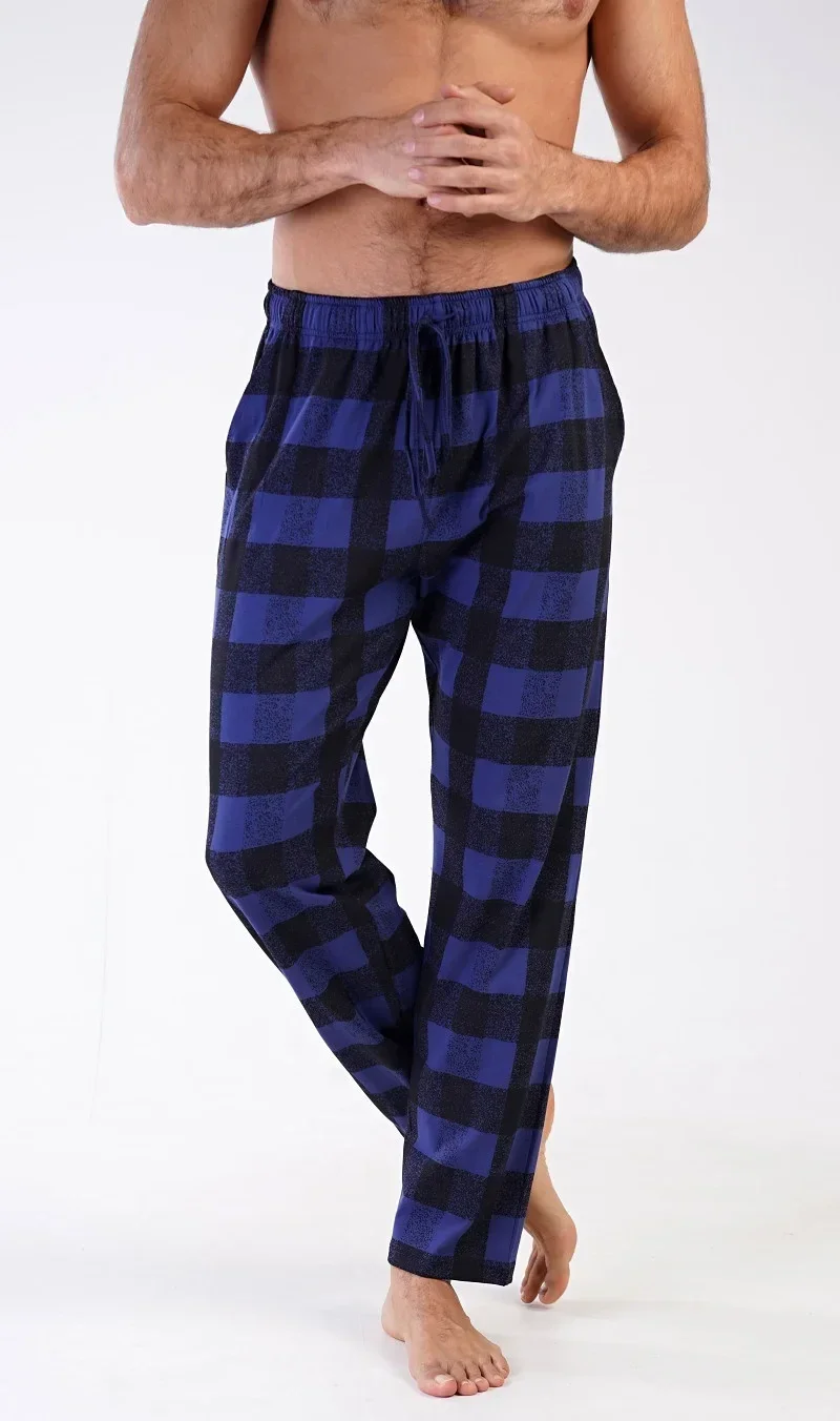 Pánské bavlněné pyžamové kalhoty Johnny. Kostkované kalhoty mají v pase gumu, šňůrku na stažení a praktické kapsy. Mateiriál s podílem bavlny 100% je příjemný a poddajný na dotek. Kalhoty jsou vhodné i na denní nošení.