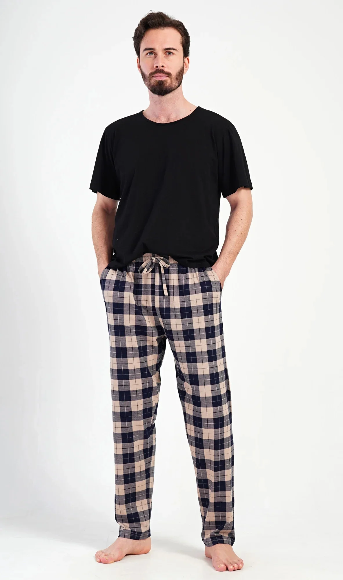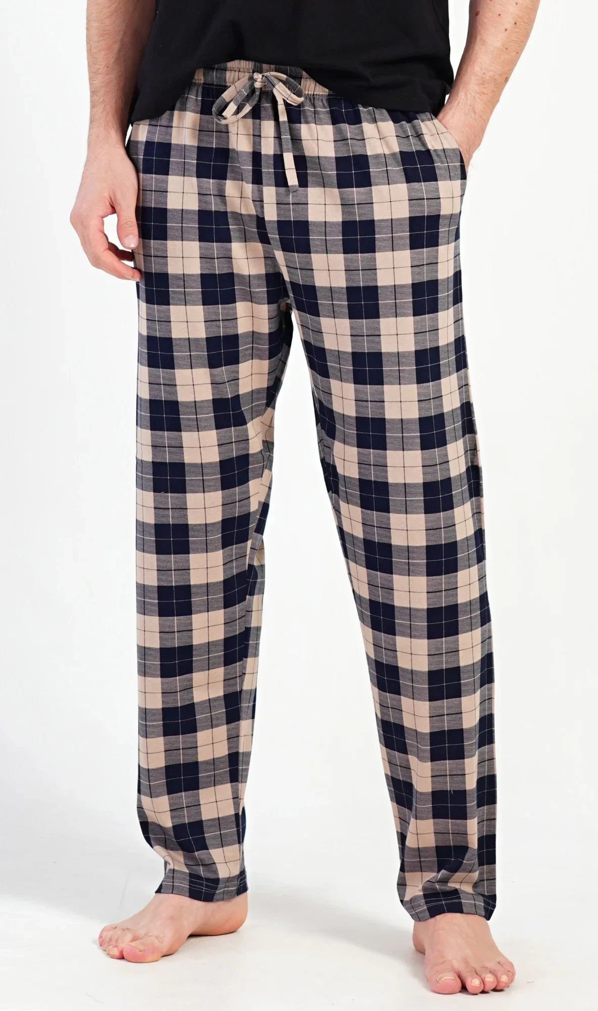 Pánské bavlněné pyžamové kalhoty Marko. Kostkované kalhoty mají v pase gumu, šňůrku na stažení a praktické kapsy. Mateiriál s podílem bavlny 100% je příjemný a poddajný na dotek.