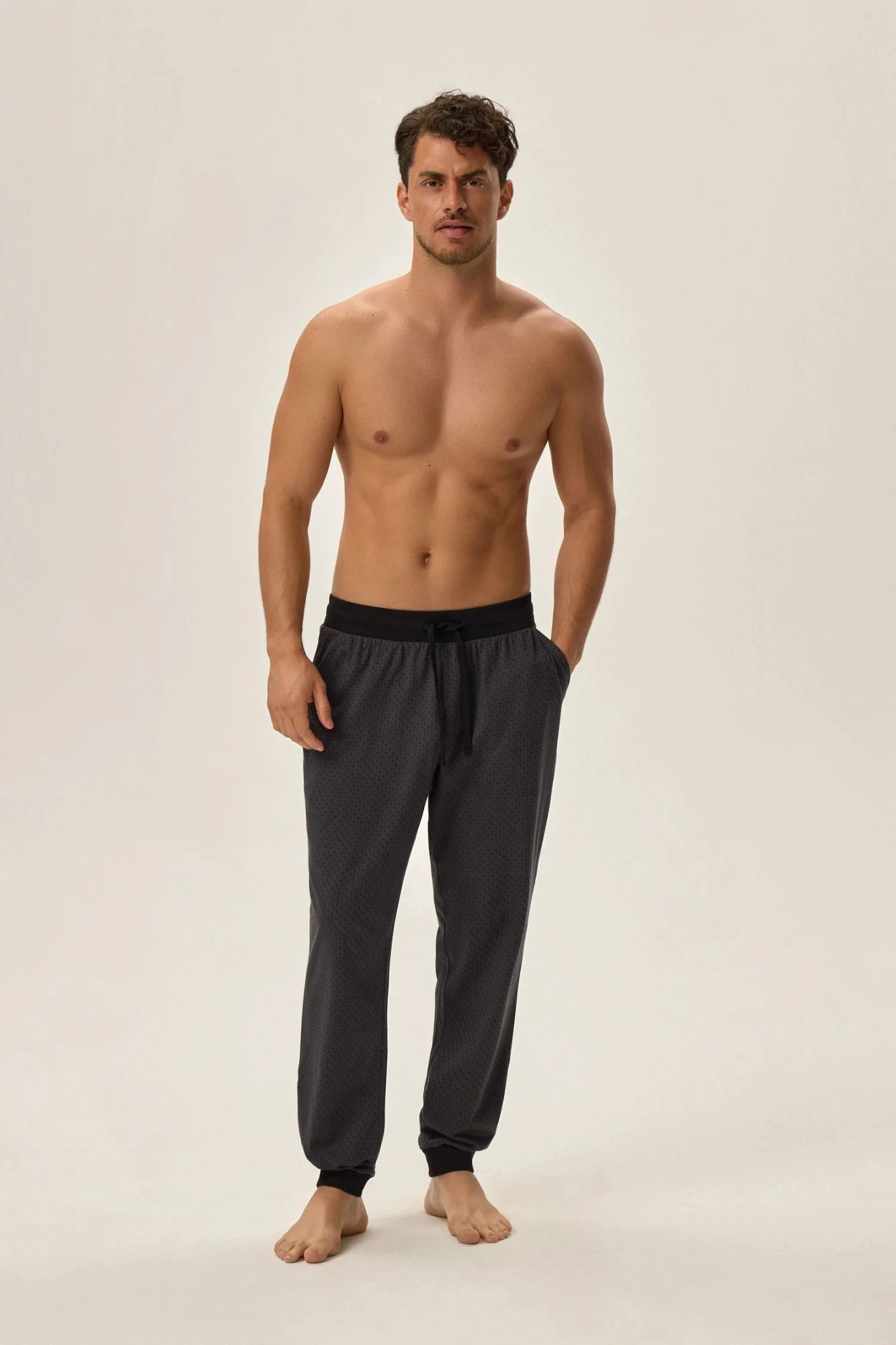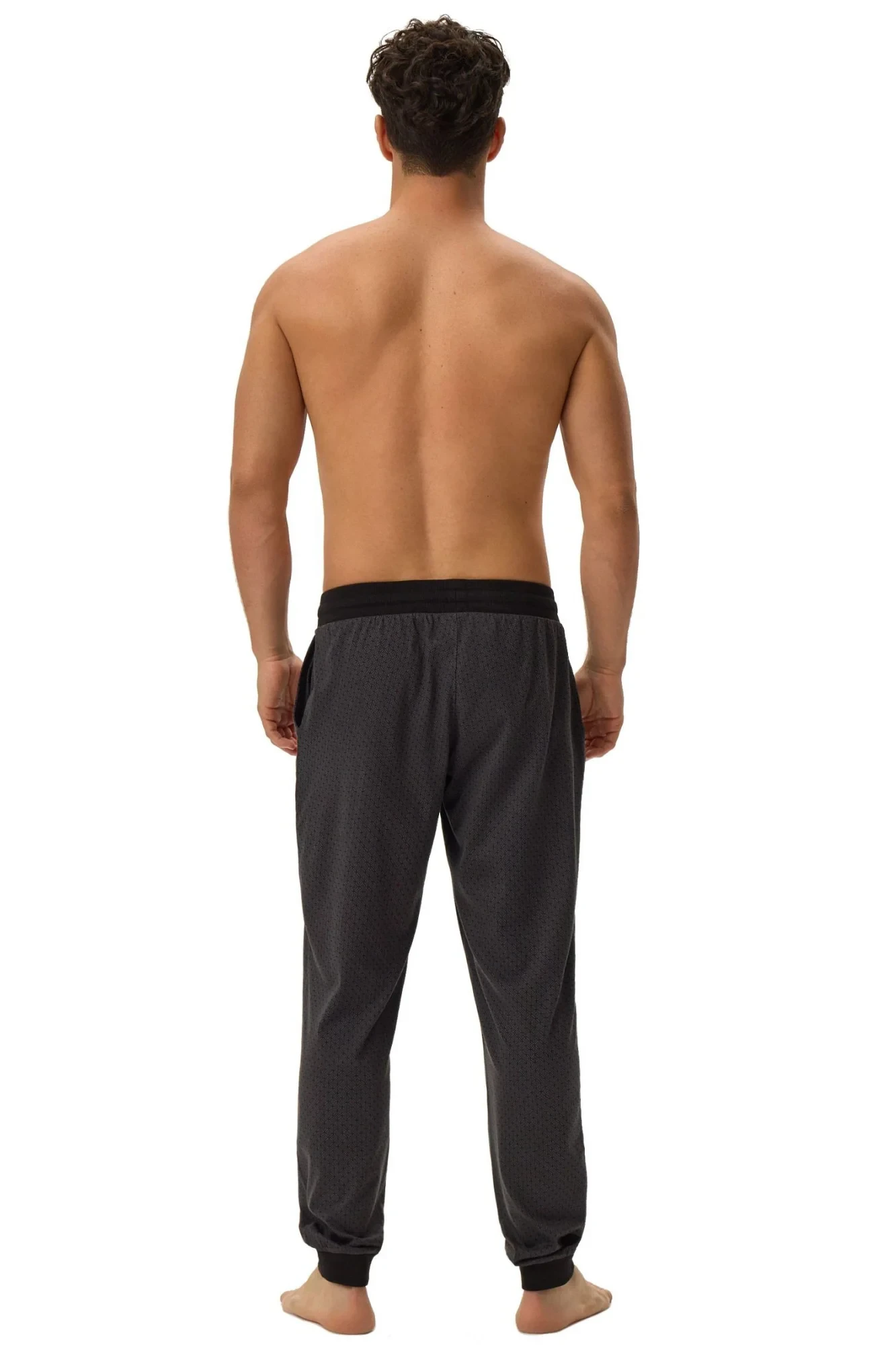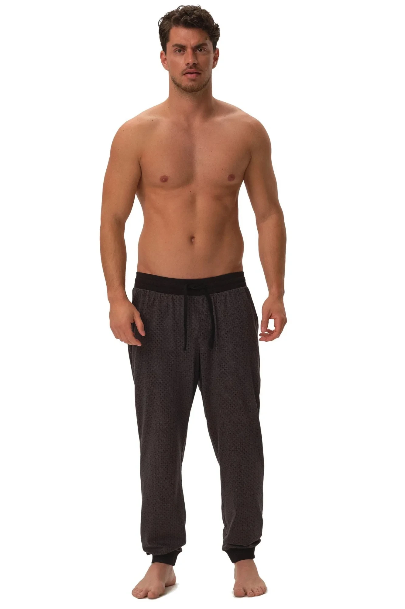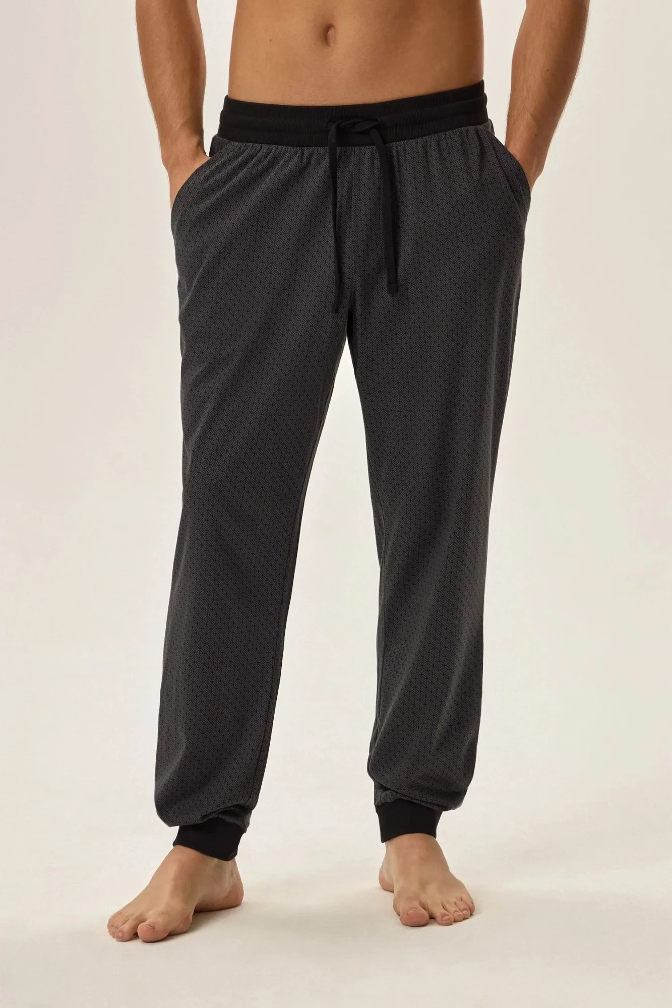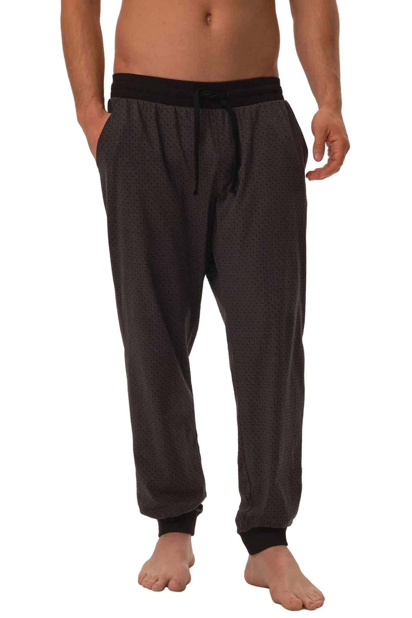 Pánské pyžamové kalhoty 42260 Harper HENDERSON - černá barva - z velmi kvalitní bavlny - dlouhé vzorované kalhoty zakončené manžetou - zavazování v pase na šňůrku