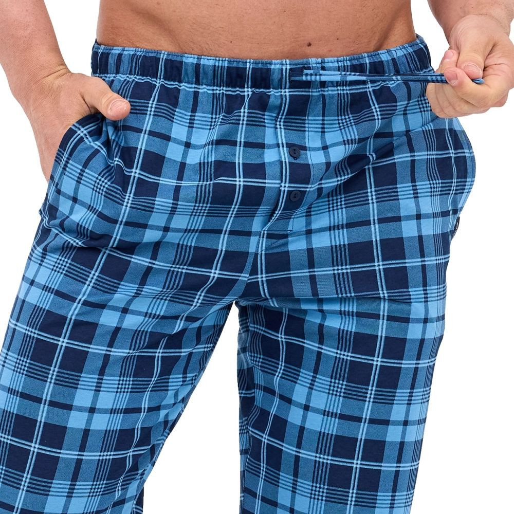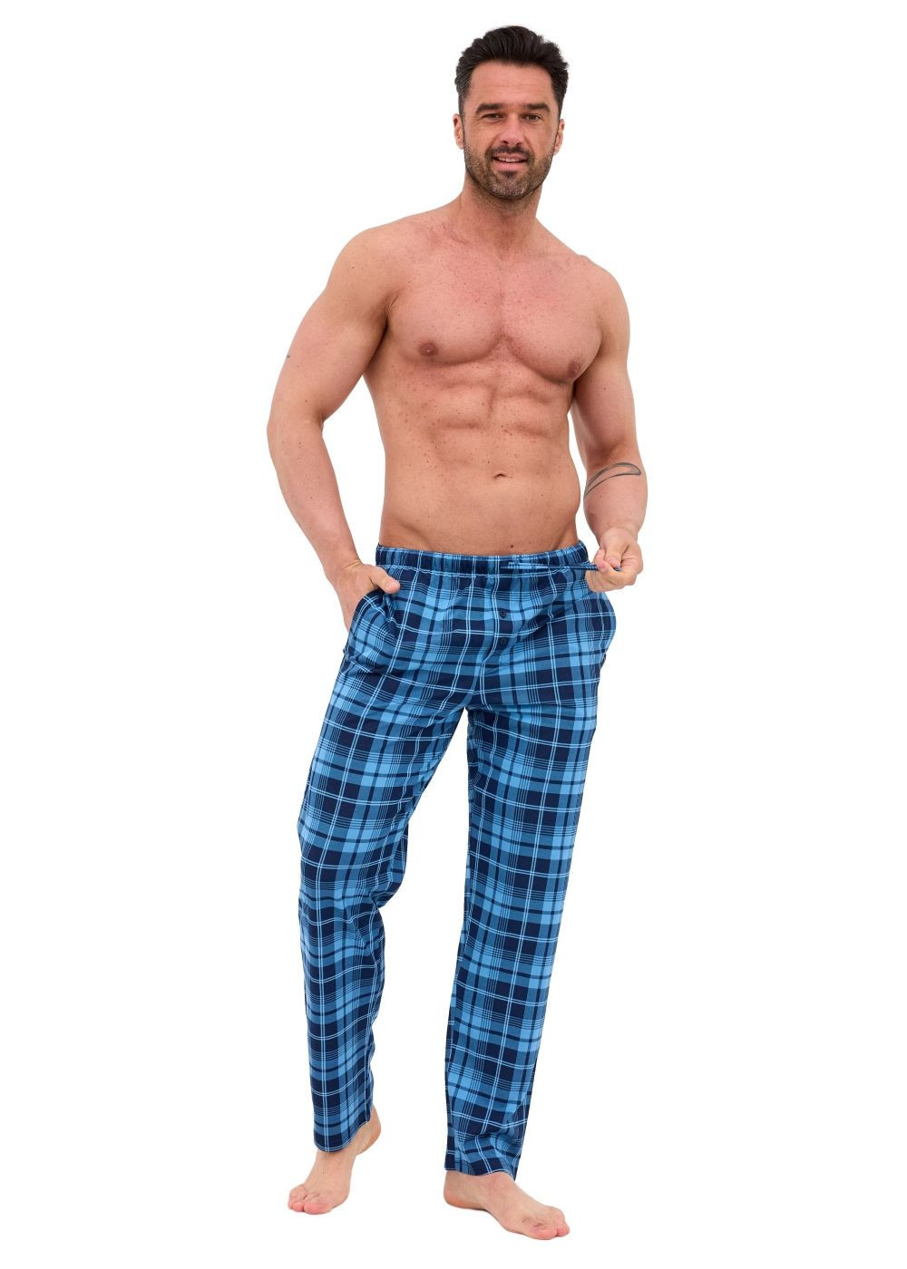Pánské pyžamové kalhoty 691/62 CORNETTE - tmavě modrá barva - z velmi kvalitní bavlny - dlouhé vzorované kalhoty - na bocích kapsy - elastická pas se zavazováním