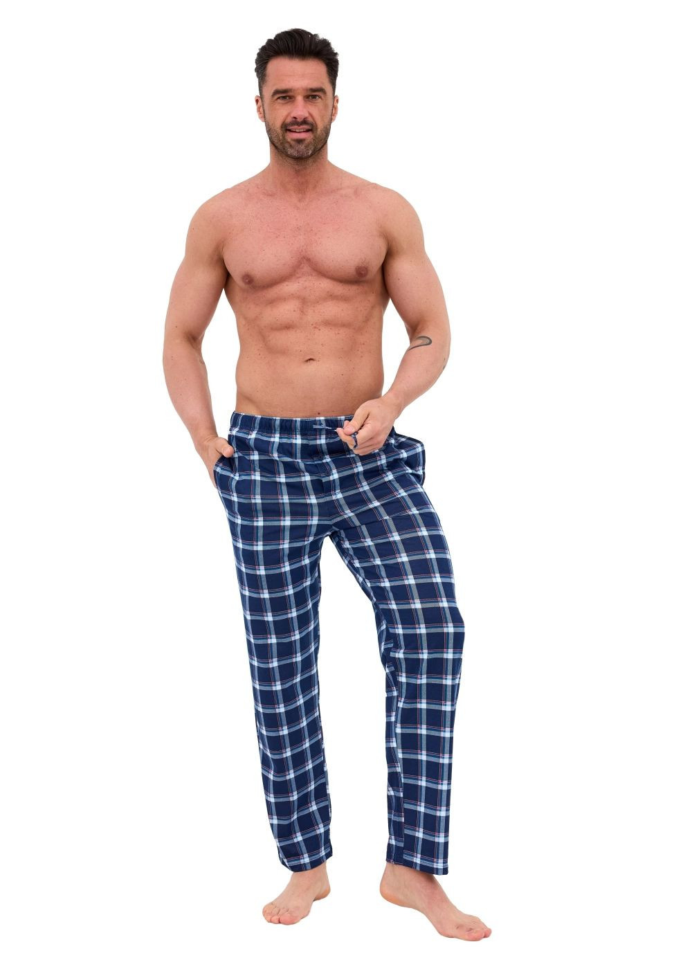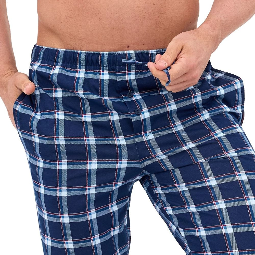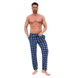 Pánské pyžamové kalhoty 691/61 CORNETTE - tmavě modrá barva - z velmi kvalitní bavlny - dlouhé vzorované kalhoty - na bocích kapsy - elastická pas se zavazováním