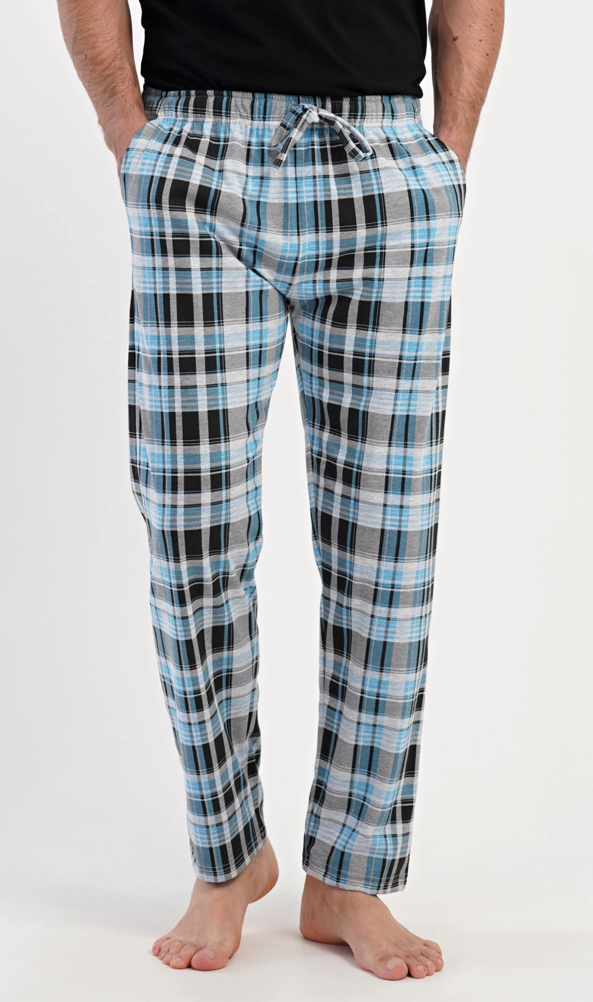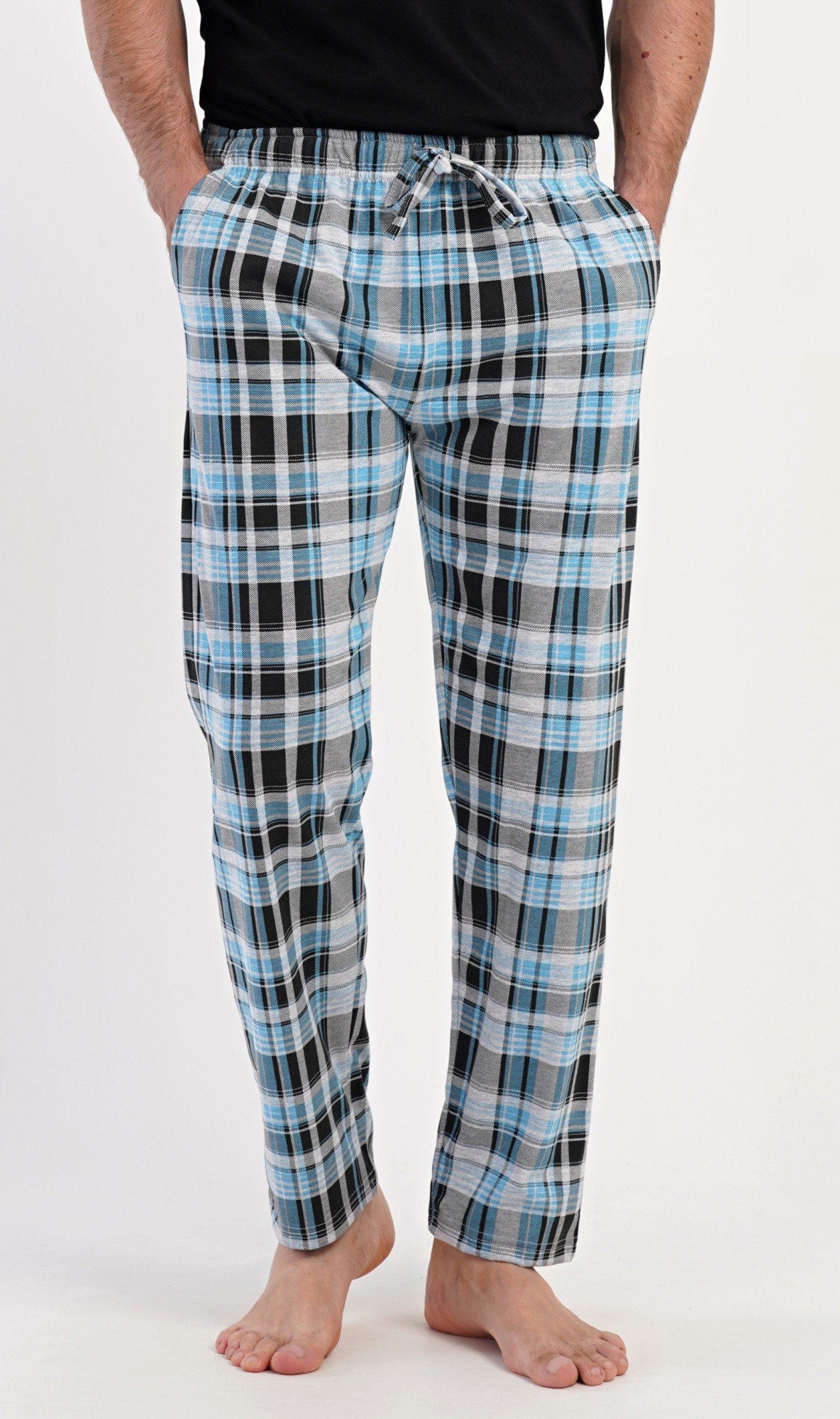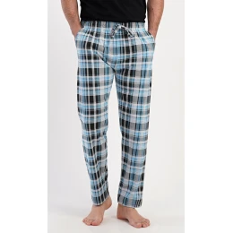 Pánské bavlněné pyžamové kalhoty Andrew. Kostkované kalhoty mají v pase gumu, šňůrku na stažení a praktické kapsy. Mateiriál s podílem bavlny 100% je příjemný a poddajný na dotek.
