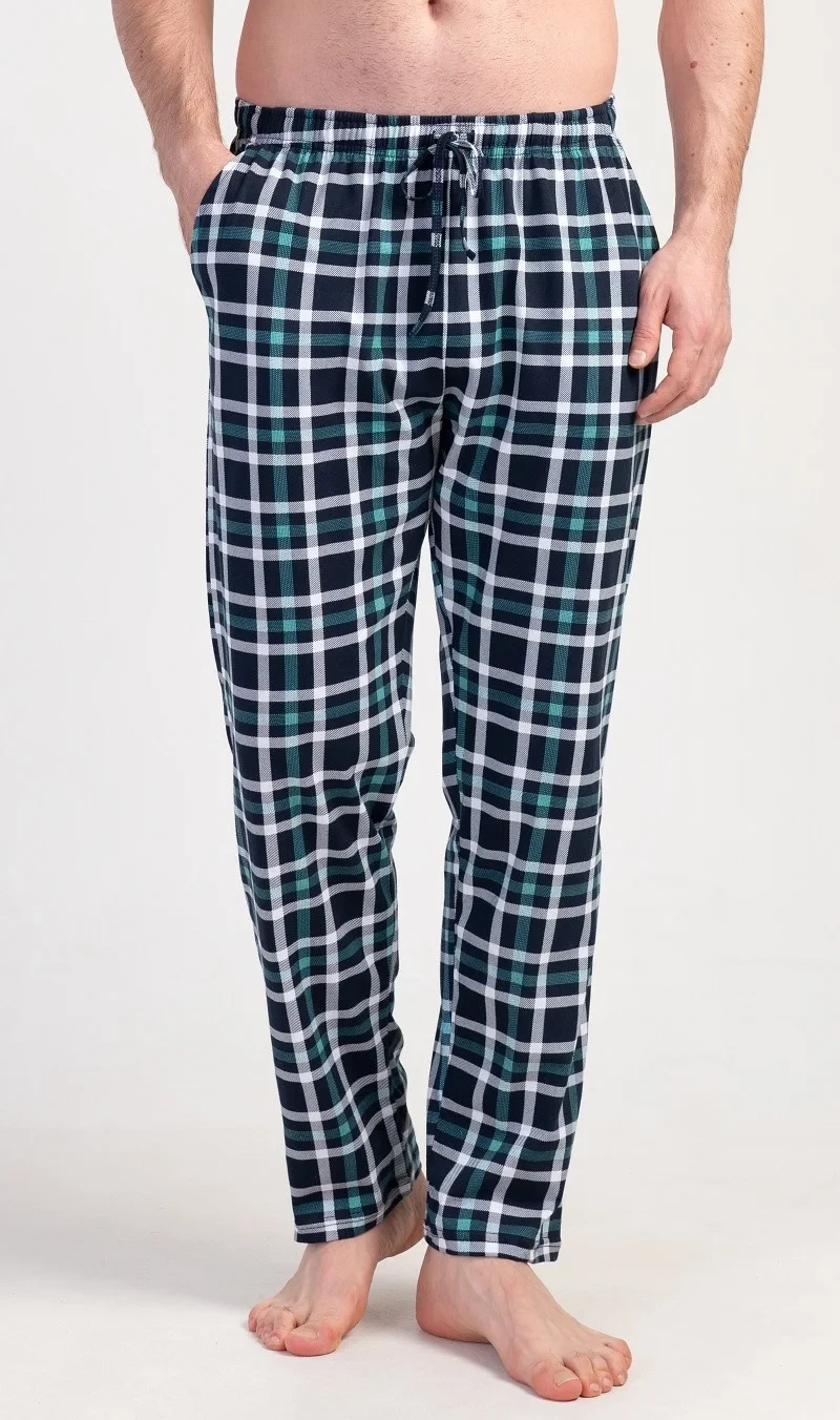 Pánské bavlněné pyžamové kalhoty Simon. Kostkované kalhoty mají v pase gumu, šňůrku na stažení a praktické kapsy. Mateiriál s podílem bavlny 100% je příjemný a poddajný na dotek.
