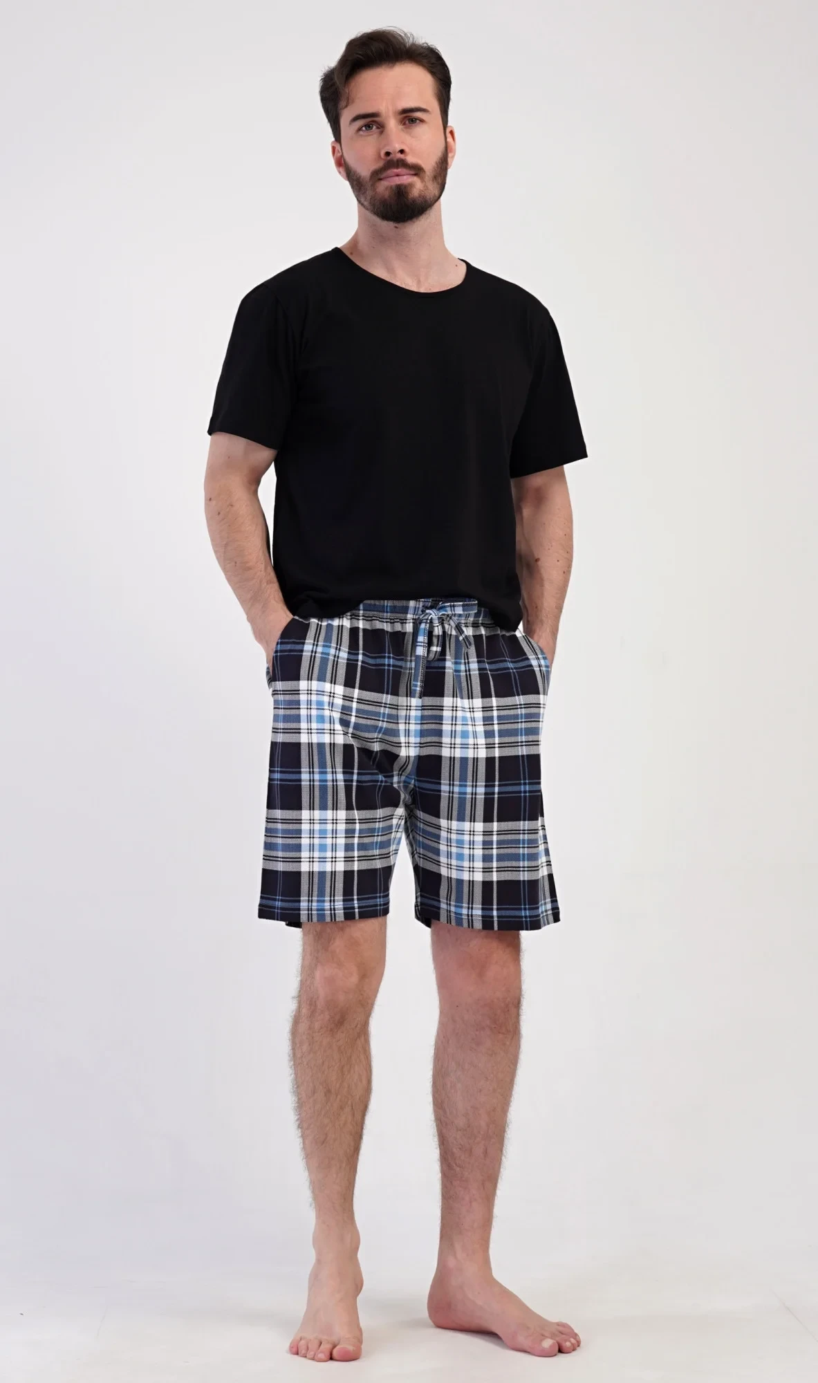 Pánské bavlněné pyžamové šortky Felix. Kostkované šortky mají v pase gumu, šňůrku na stažení a praktické kapsy. Mateiriál s podílem bavlny 100% je příjemný a poddajný na dotek. Pyžamové šortky jsou vhodné i na denní nošení pro volnočasové aktivity.