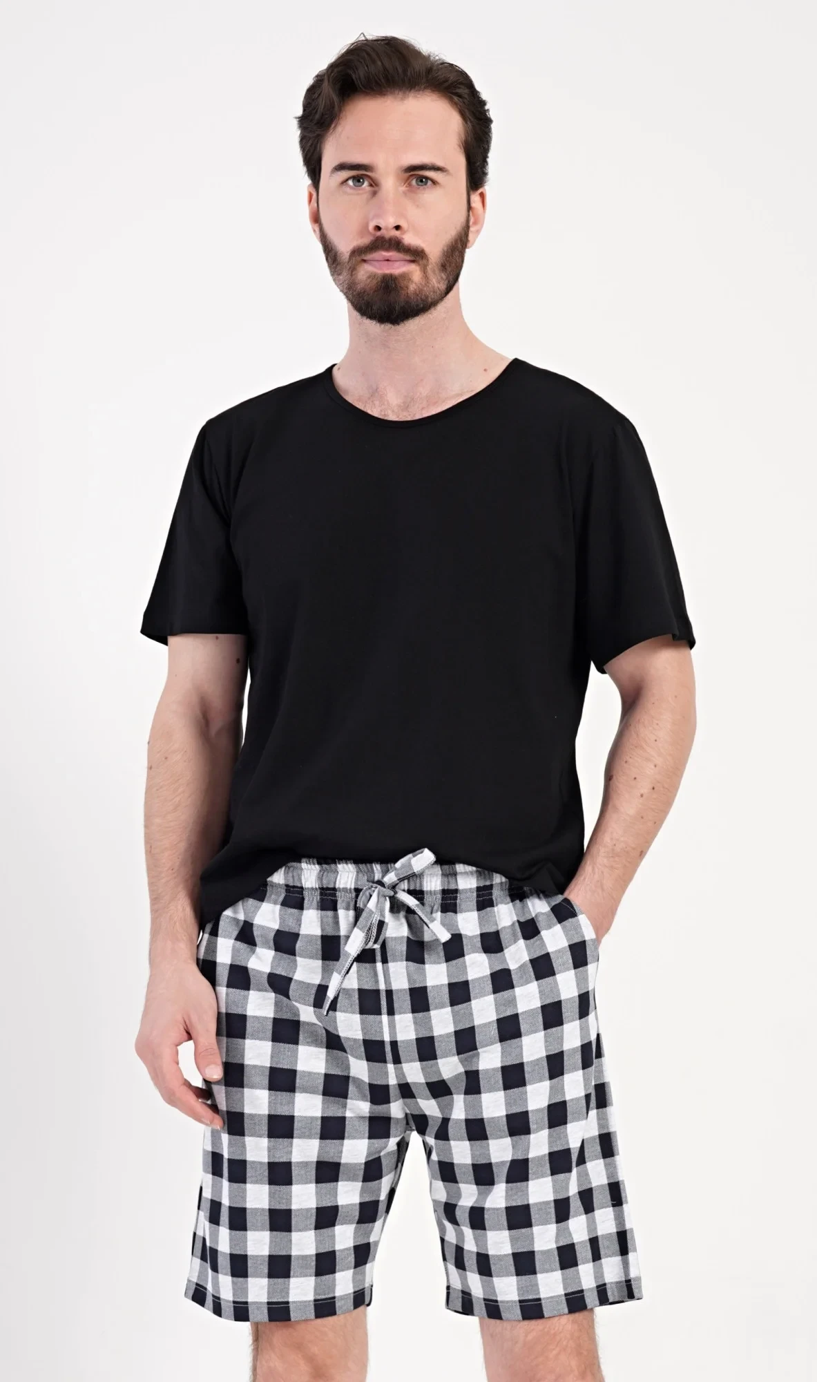 Pánské pyžamové šortky Alfréd. Kostkované šortky mají v pase gumu, šňůrku na stažení a praktické kapsy. Mateiriál s podílem bavlny 70% je příjemný a poddajný na dotek. Pyžamové šortky jsou vhodné i na denní nošení pro volnočasové aktivity.