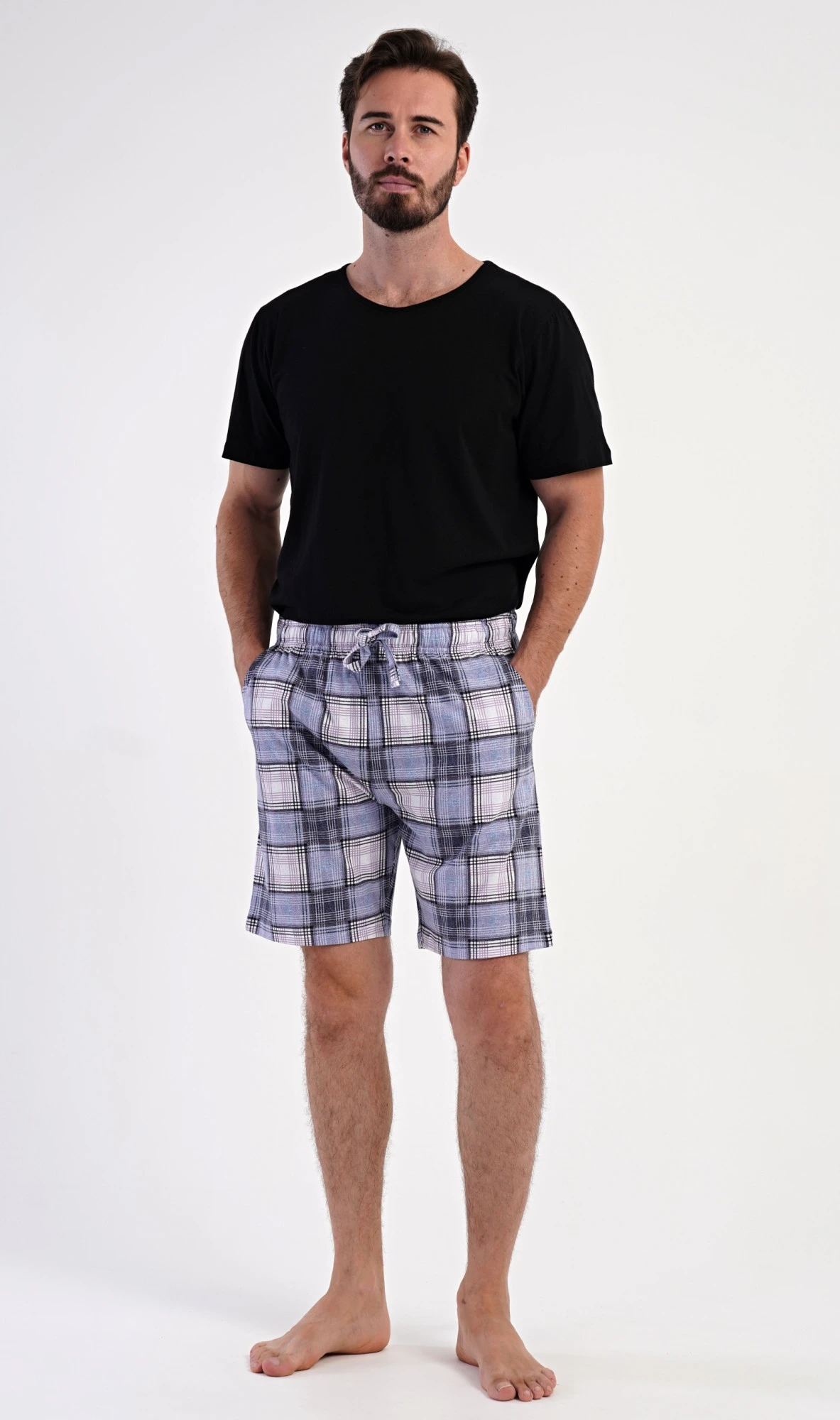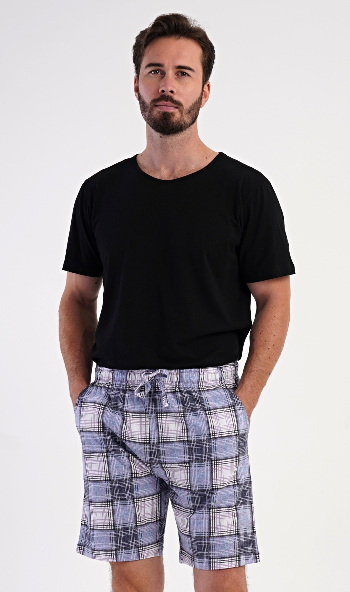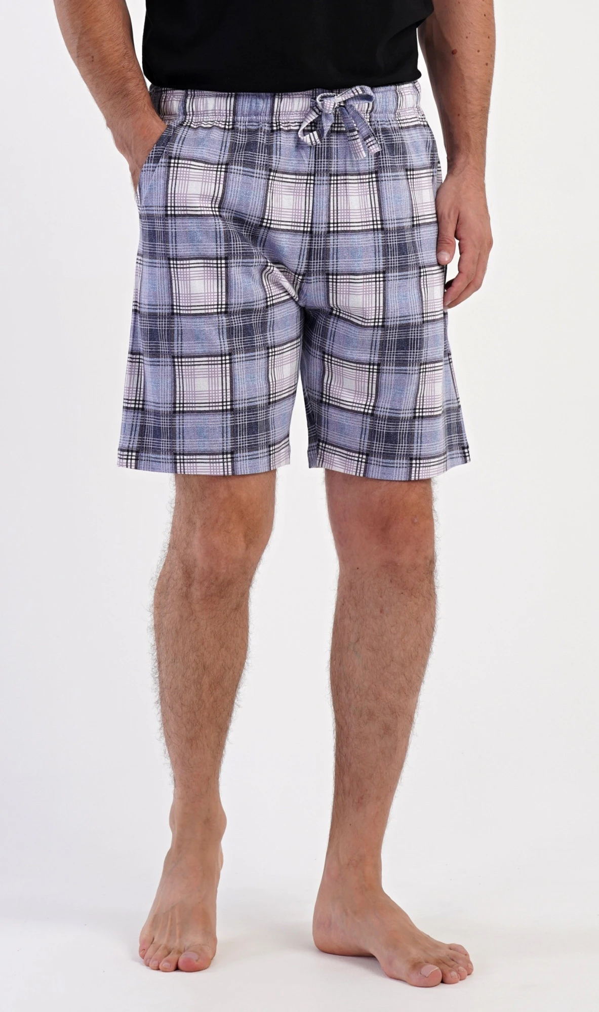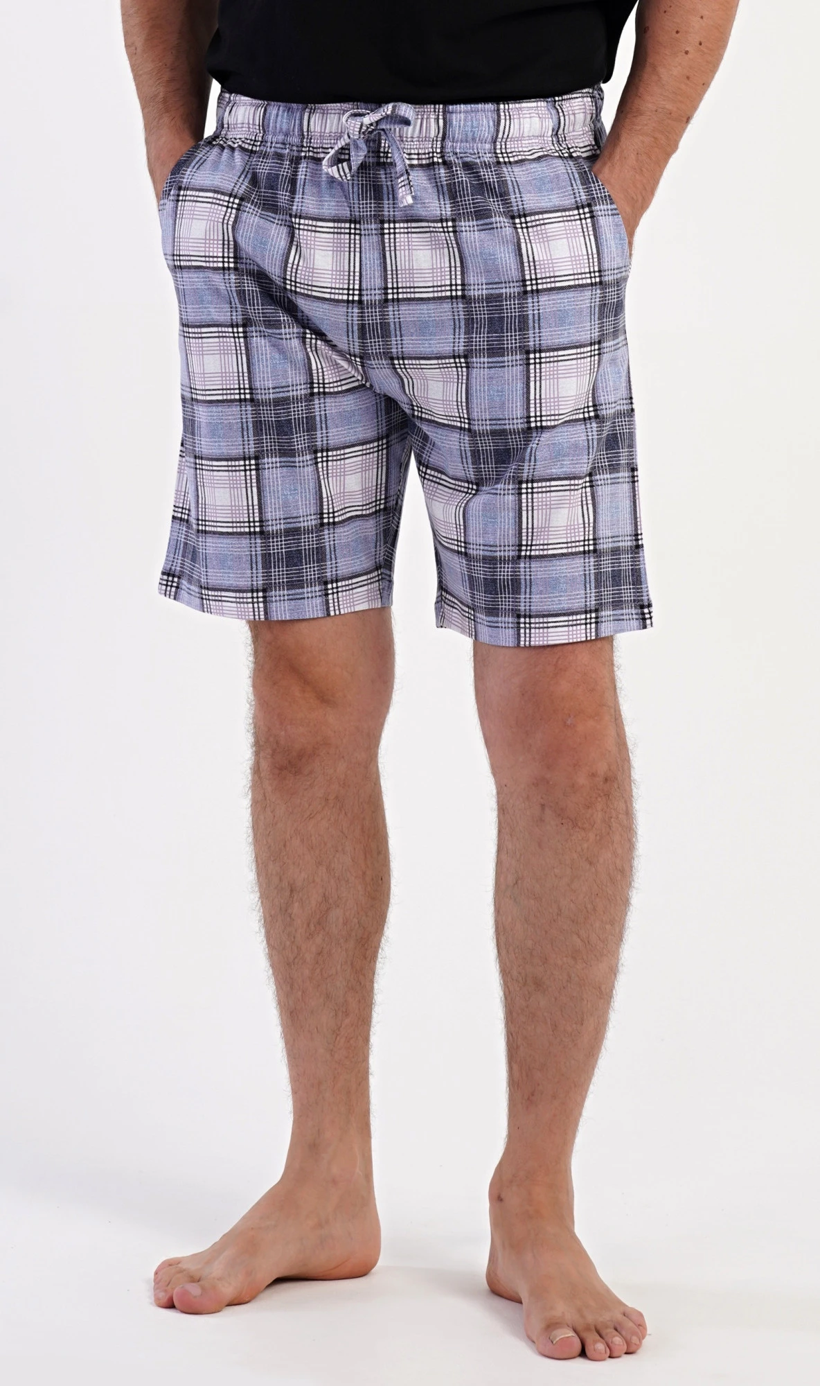 Pánské bavlněné pyžamové šortky Radim. Kárované šortky mají v pase gumu, šňůrku na stažení a praktické kapsy. Mateiriál s podílem bavlny 100% je příjemný a poddajný na dotek. Pyžamové šortky jsou vhodné i na denní nošení pro volnočasové aktivity.