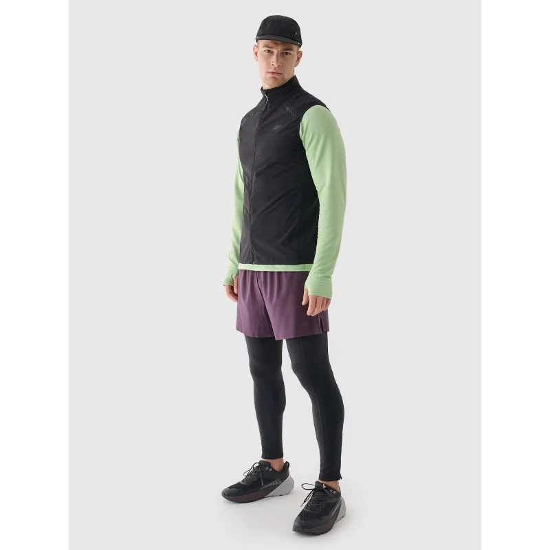 Getry do biegania w terenie 4F męskie z szybkoschnącymi włóknami w technologii 4FDry, które wspierają odprowadzanie wilgoci z dala od ciała. Otwarta kieszeń z boku. Elastyczny pas bez regulacji. Suwaki u dołu nogawek ułatwiają nakładanie i zdejmowanie legginsów. Całości dopełniają elementy odblaskowe dla poprawy widoczności.