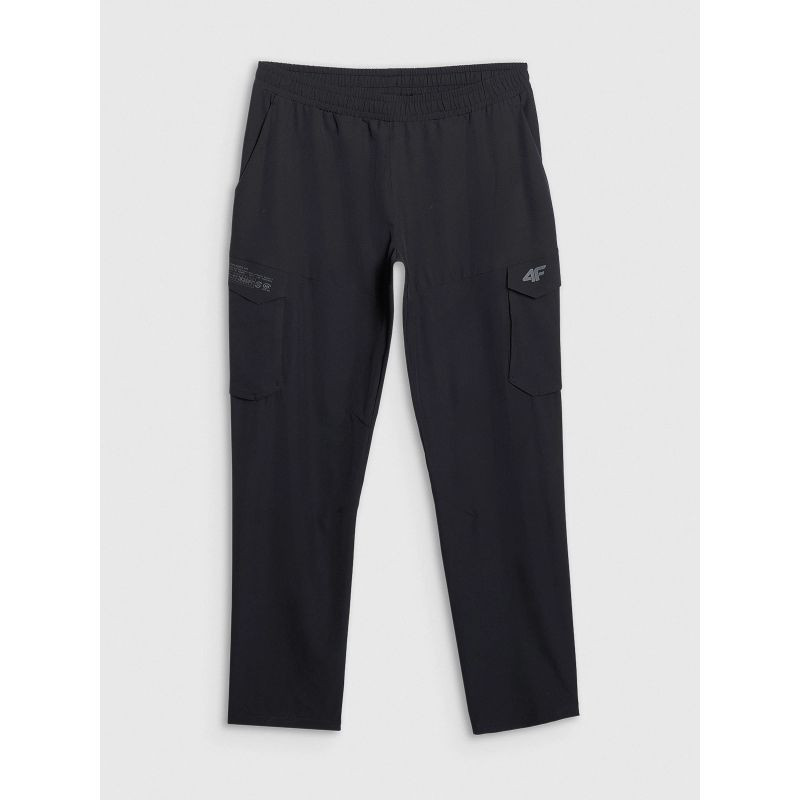 Te męskie spodnie treningowe 4F zostały stworzone z myślą o wygodzie i swobodzie ruchów podczas ćwiczeń o różnej intensywności. Krój regular oraz zwężane nogawki bez ściągacza zapewniają naturalne, niekrępujące dopasowanie, a miękka, wytrzymała dzianina interlock gwarantuje komfort przez cały trening. Dodatek elastanu (8%) zwiększa elastyczność materiału, dzięki czemu spodnie dopasowują się do sylwetki i pracują z każdym ruchem. Technologia 4FDry wspiera szybkie odprowadzanie wilgoci, co pomaga zachować uczucie suchości nawet podczas intensywnego wysiłku. Funkcjonalność dopełniają 2 otwarte kieszenie boczne, 2 kieszenie cargo oraz pas z wewnętrzną regulacją na troki, umożliwiający idealne dopasowanie.