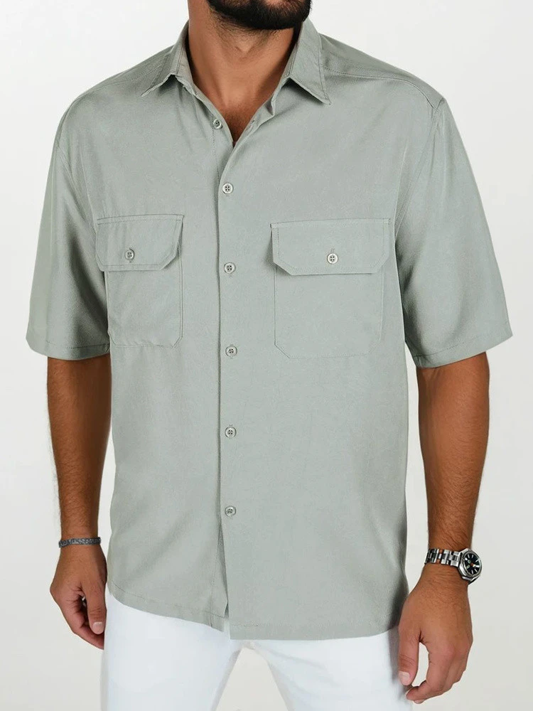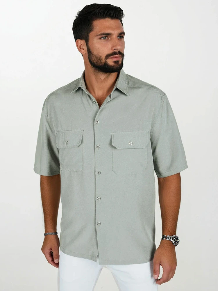 Stylová pánská košile z vysoce kvalitní viskózy je nezbytným doplňkem pro jarní sezónu. Model s krátkými rukávy, límečkem a zapínáním na knoflíky je ideální pro každodenní i poloformální styling. Dvě kapsy na přední straně dodávají praktický nádech, zatímco přírodní materiál zajišťuje celodenní pohodlí.