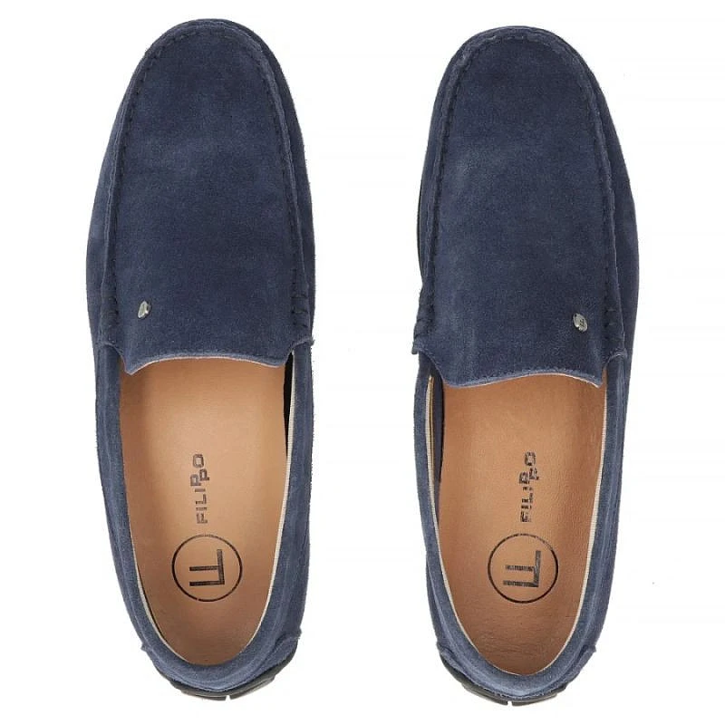 Pánské semišové kožené mokasíny polobotky tmavě modré model 22061146 - FILIPPO