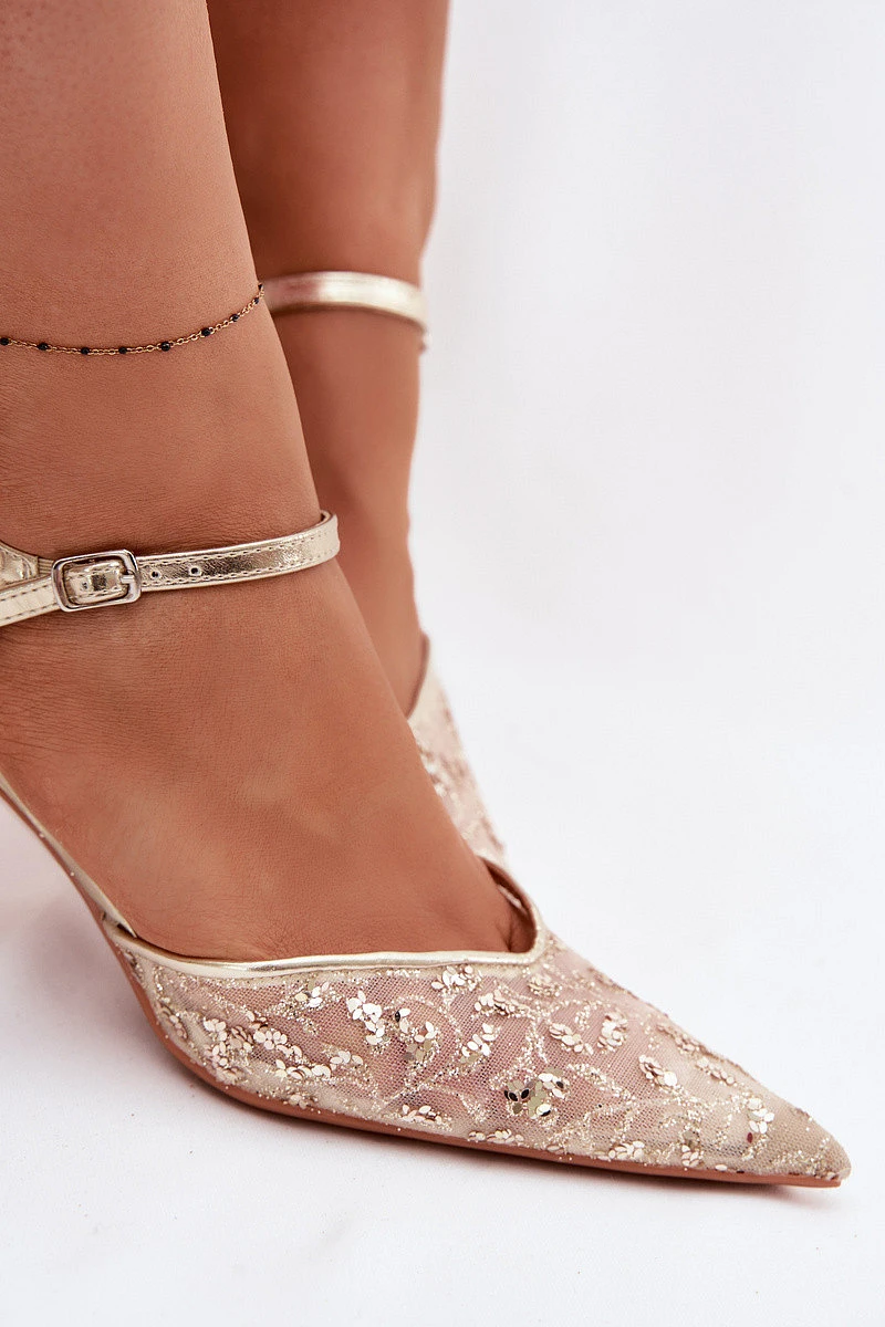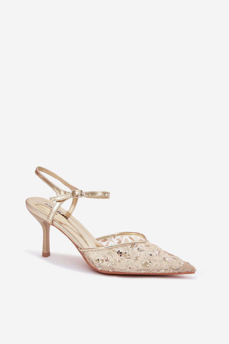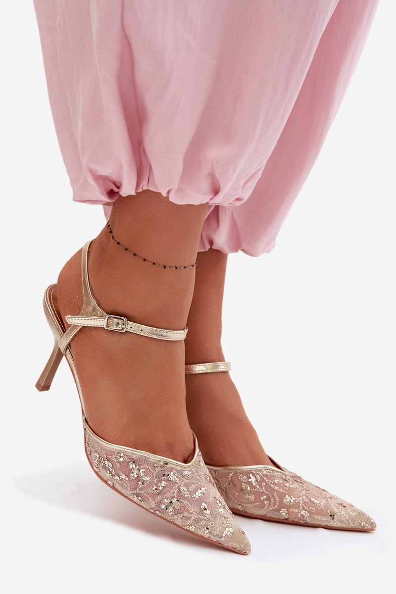 Pánské síťované dámské sandály na jehlovém podpatku se zdobením Zlato model 22103194 - Boto