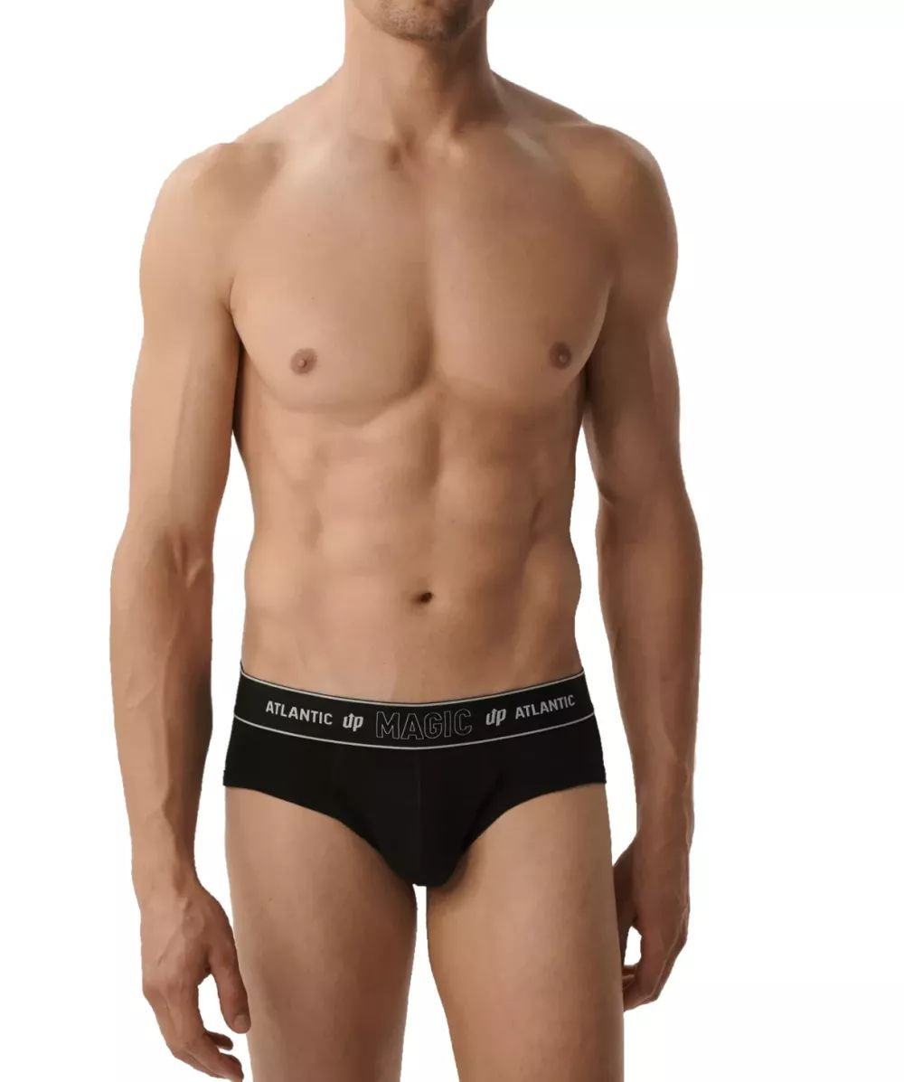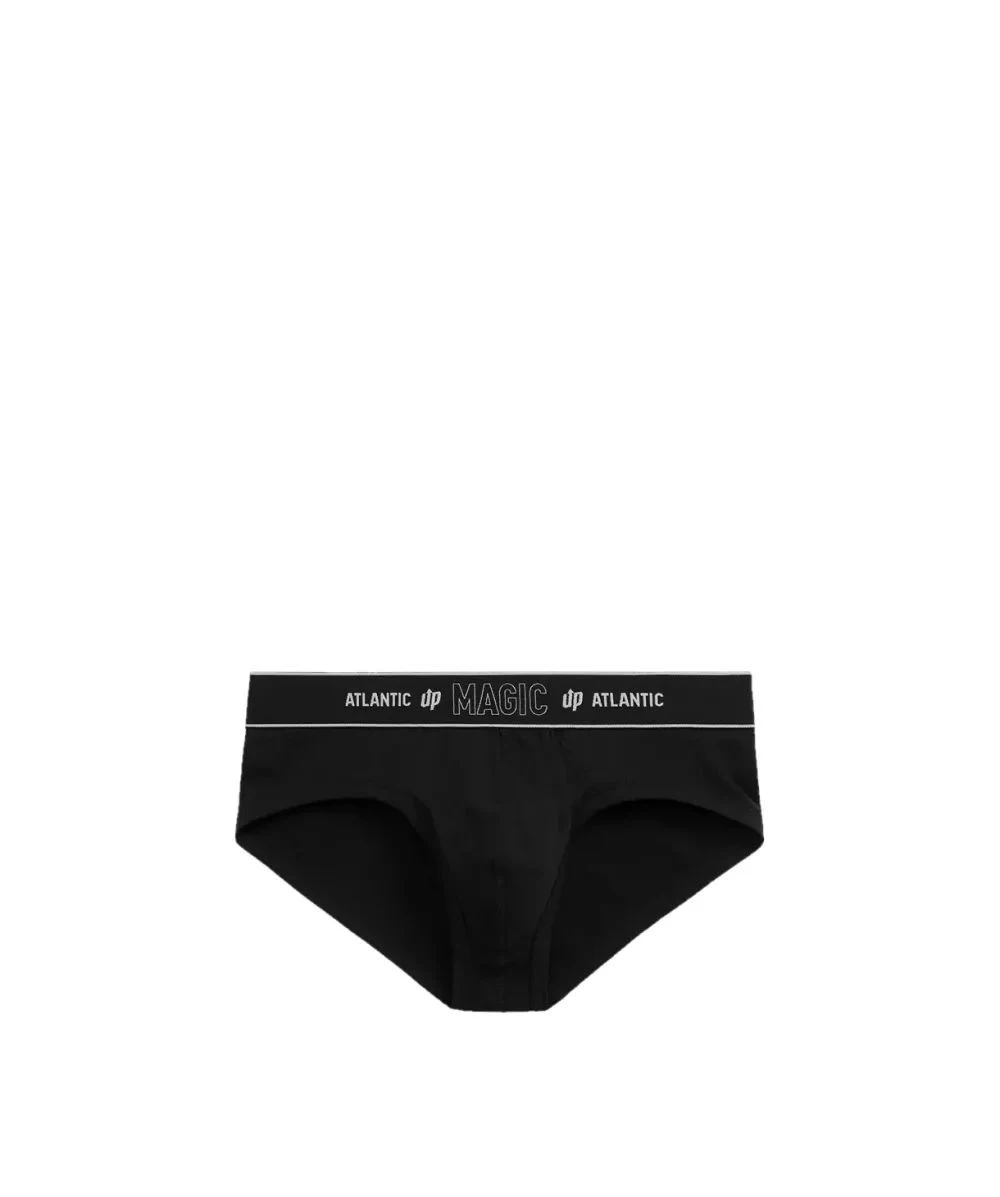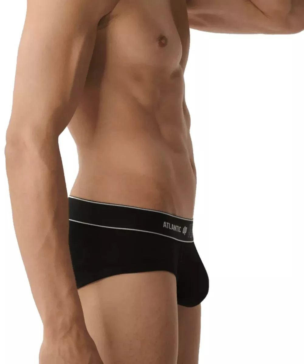 Pánské slipy 1581 black Atlantic - černá barva - z vysoce jakostní prodyšné strečové bavlny - zajišťuje proudění vzduchu - sportovní střih - nízký pas - široký elastický pas s nápisem Atlantic